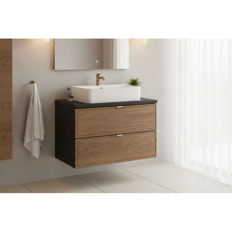 Ajoutez une touche moderne à votre salle de bain avec ce plan SAVIA 80 cm noir mat. Parfait pour les meubles sous vasque de 80 cm, il offre une surface élégante et résistante pour installer une vasque à poser.