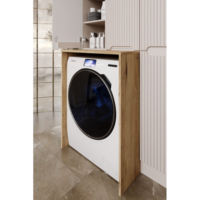 Le meuble de rangement pour machine à laver VANO séduit par son design moderne et son décor chêne Coast Evoke qui apporte chaleur et authenticité à votre espace buanderie ou salle de bain. Son aspect bois naturel crée une ambiance douce et contemporaine tout en permettant d’intégrer harmonieusement votre lave-linge dans votre intérieur.