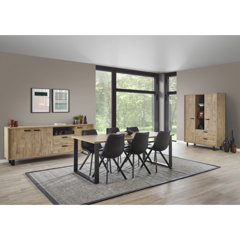 Son coloris chêne doré et ses pieds en métal lui confèrent un style chic et intemporel, parfait pour s’intégrer dans une décoration moderne comme classique. Conçu en panneaux de particules haute densité et MDF de première qualité, ce meuble garantit robustesse et longévité.