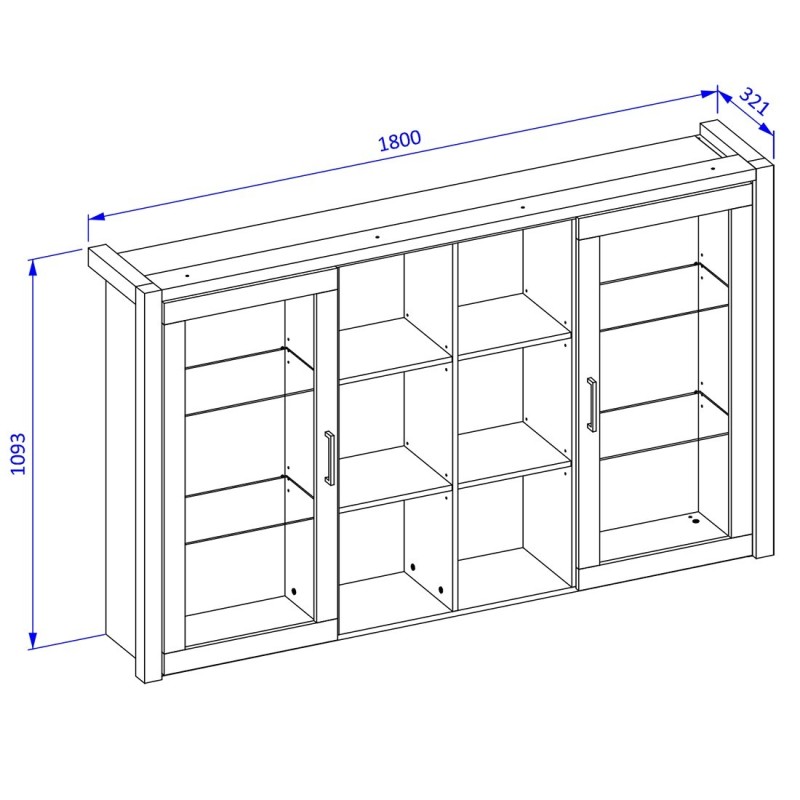 - CARACTÉRISTIQUES : Huche composée de 2 portes vitrées et 6 niches avec éclairage LED intégré.