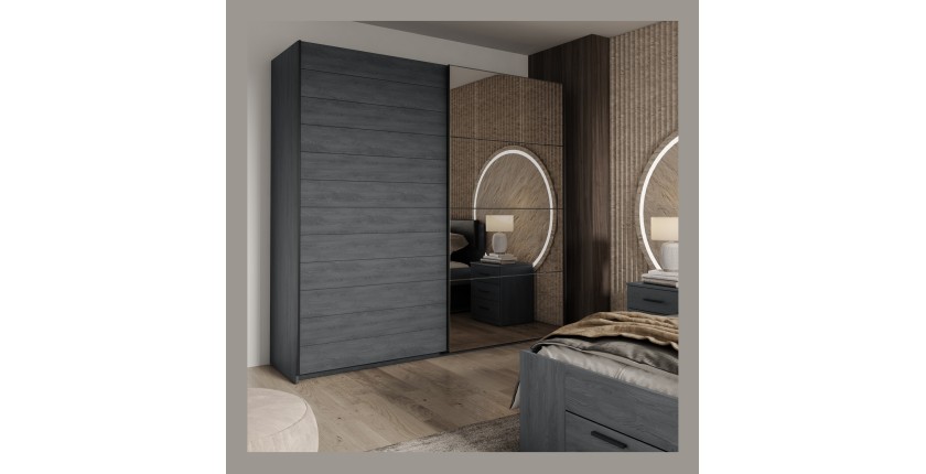 Armoire deux portes dont une avoir un miroir plein. Cette garde robe vous charmera grâce à ses couleurs tendances et ses finitions soignées.