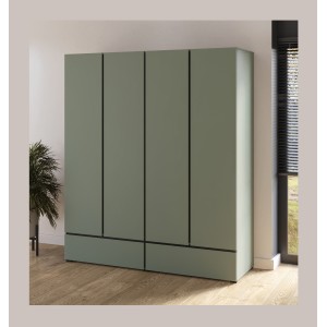 Transformez votre chambre avec l’élégance naturelle de la grande armoire HAVANA en coloris vert sauge et noir. Avec ses 4 portes battantes et ses 2 tiroirs spacieux, cette armoire de 180 cm de large offre une solution de rangement complète, parfaitement adaptée aux grandes chambres modernes.