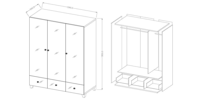Armoire penderie collection LIVORA composée trois portes, elle vous charmera grâce à ses miroirs tendances et ses finitions soignées.