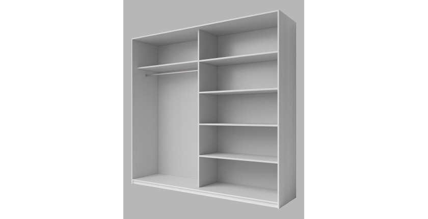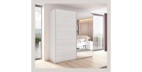 Cette garde robe sublimera votre chambre avec son coloris blanc. Composée de 2 portes dont 1 avec un miroir. Ce grand miroir sera parfait pour vos séances d'essayage et apporteront clarté et luminosité à votre chambre. L'intérieur est muni de nombreux espaces de rangements : une grandes penderies et 5 étagères afin d'en faire un dressing qui accueillera aisément toute votre garde-robe.