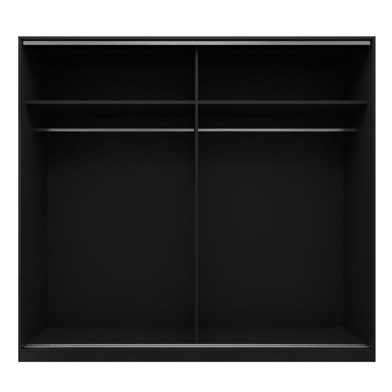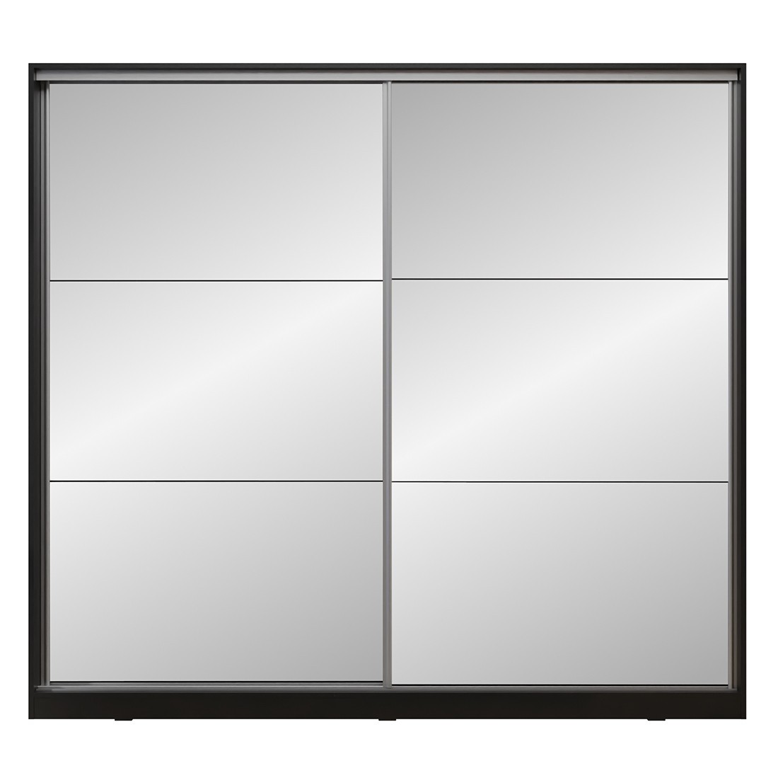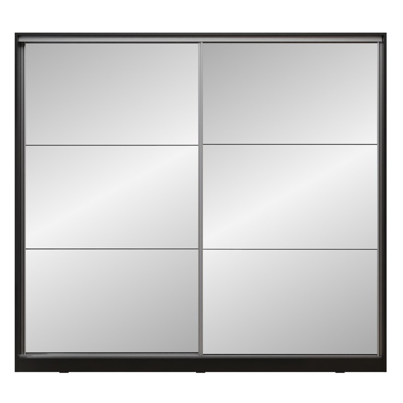 Cette garde robe sublimera votre chambre avec son coloris noir. Ses grands miroirs seront parfaits pour vos séances d'essayage et apporteront clarté et luminosité à votre chambre. L'intérieur est muni de nombreux espaces de rangement : deux penderies et deux grandes étagères de rangements afin d'en faire un dressing qui accueillera aisément toute votre garde-robe.