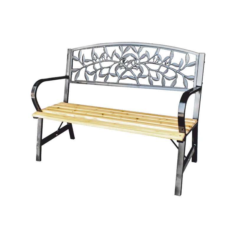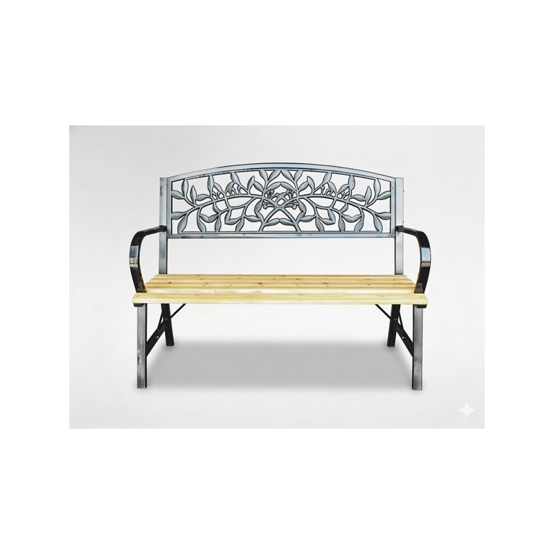 L’association du bois naturel et de la structure noire apporte un rendu chaleureux et raffiné. Son dossier ornemental au motif feuilles renforce son style décoratif et en fait un véritable atout pour l’aménagement du jardin ou de la terrasse.