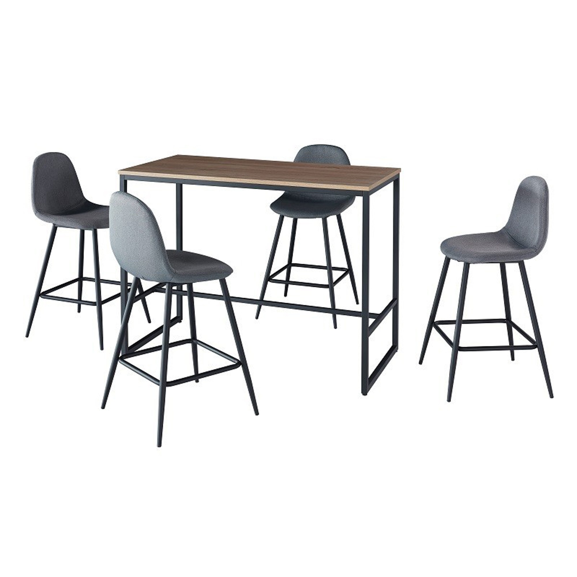 Offrez à votre intérieur un espace repas fonctionnel et élégant avec l’ensemble table haute MENTON. Idéal pour une cuisine, un coin repas ou un bar, cet ensemble comprend une table haute rectangulaire et quatre chaises assorties. Son design moderne allie une structure en métal noir à un plateau en MDF couleur bois, créant une ambiance chaleureuse et contemporaine. Les assises en tissu polyester rembourrées garantissent un confort optimal.