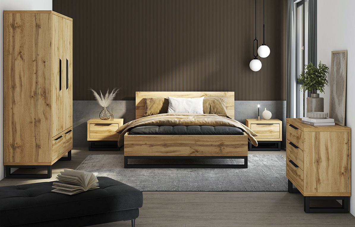 - Le lit : Qu'il soit avec ou sans coffre, il définit le style (scandinave, industriel, contemporain).