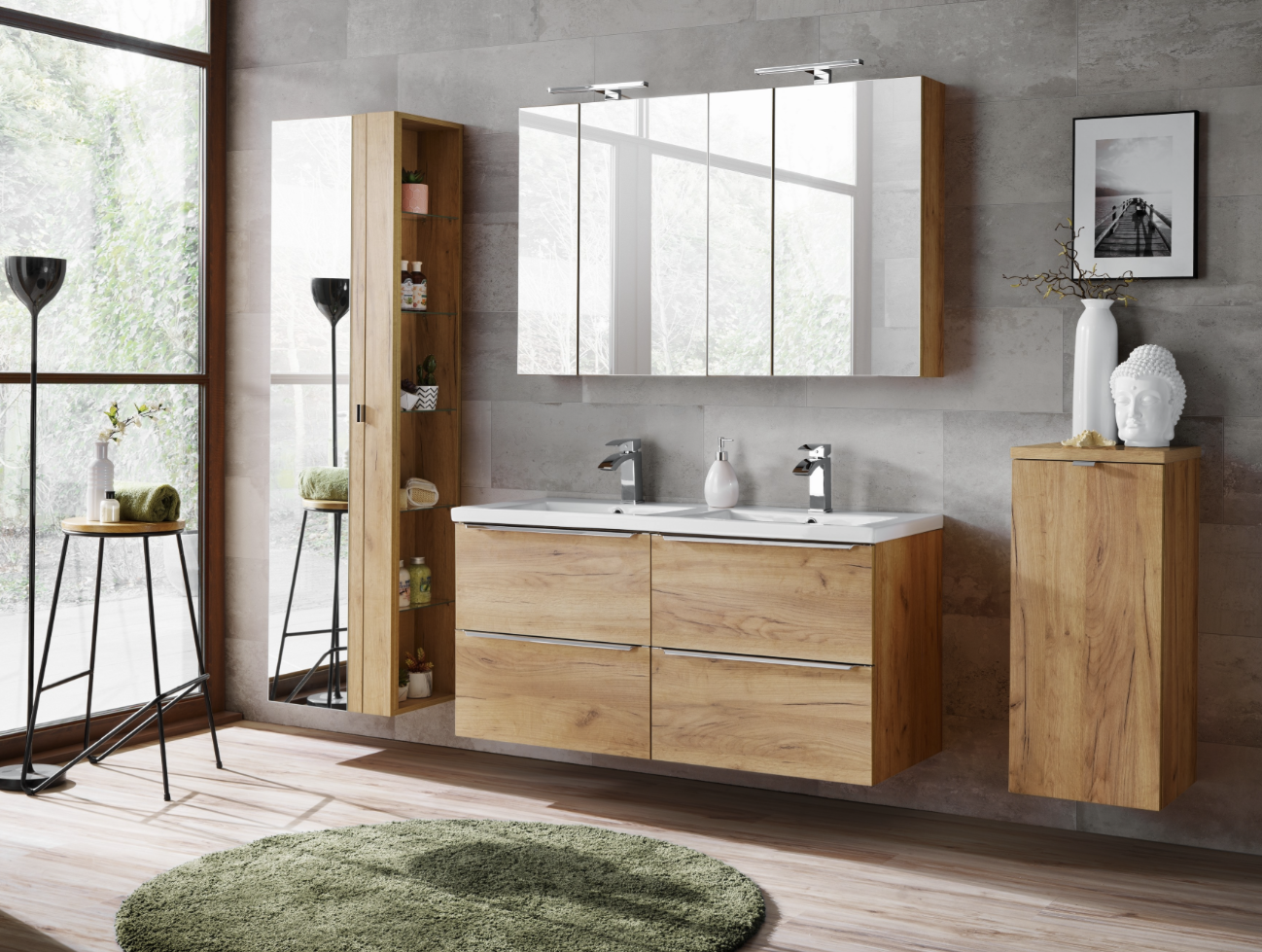 Grâce à ses étagères et ses tiroirs, la colonne permet de segmenter vos affaires par catégorie. Les produits d’hygiène quotidienne à hauteur d’yeux, le linge de toilette propre en bas, et les stocks de réserve en haut : chaque objet trouve sa place. Fini le désordre matinal, votre routine gagne en fluidité.