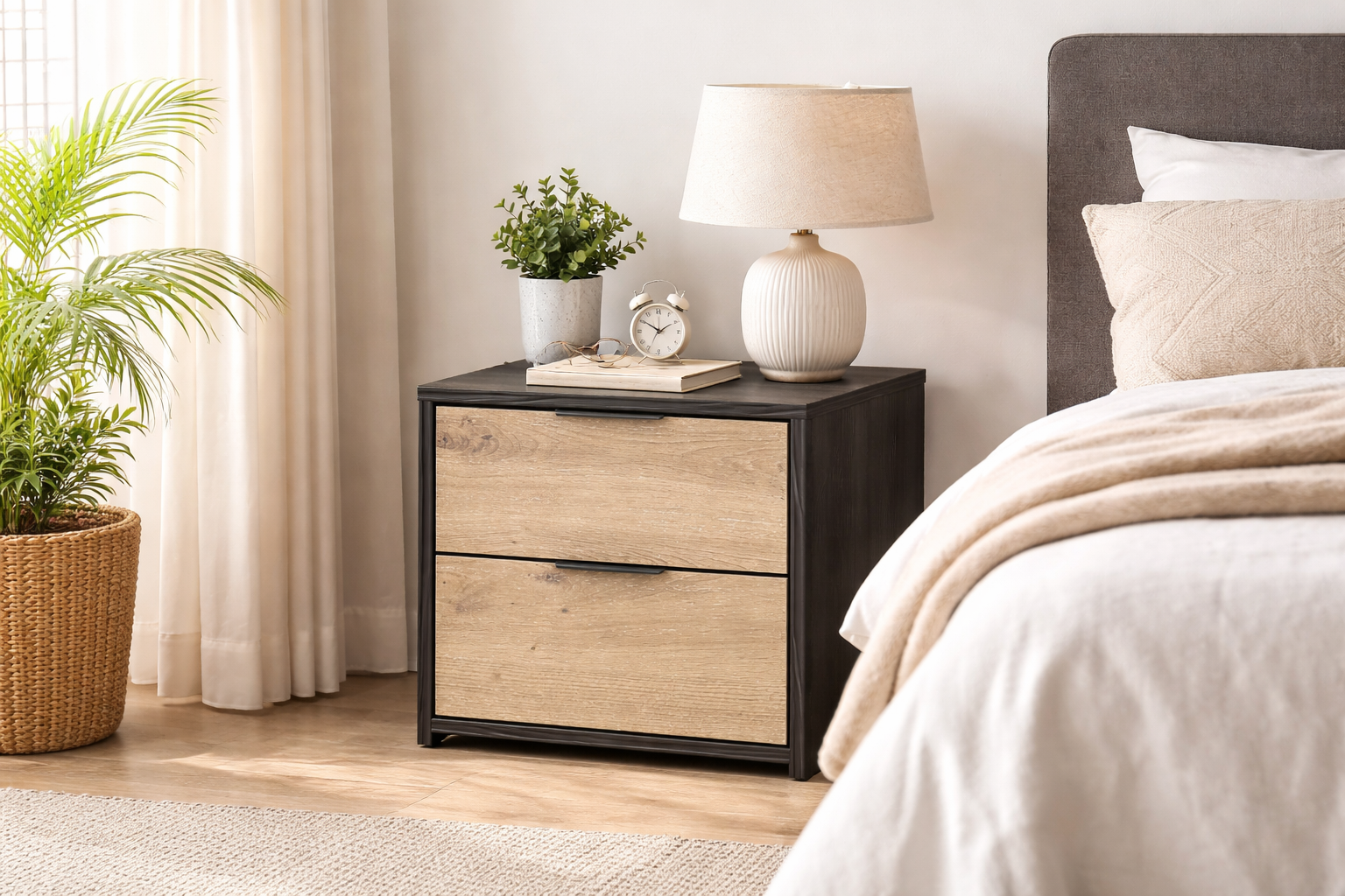 Les tables de chevet ne servent pas qu'à poser une lampe. Elles encadrent le lit et offrent des rangements de proximité (livres, lunettes, téléphone). Pour compléter, la commode reste le meuble idéal pour les sous-vêtements et le linge de maison, tout en offrant une surface pour exposer quelques objets de décoration.