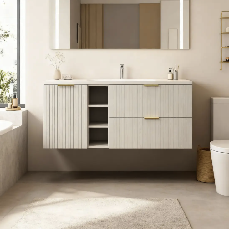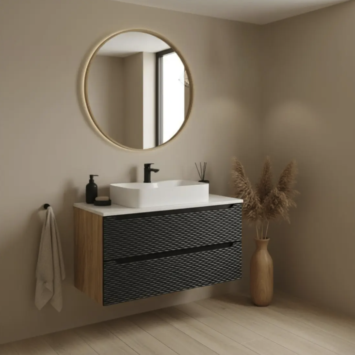 Le meuble sous vasque est souvent la pièce maîtresse de la salle de bain. Pour un budget serré, privilégiez les modèles en mélaminé ou en MDF (panneau de fibres de bois de moyenne densité), des matériaux qui offrent un bon rapport qualité-prix et une résistance correcte à l'humidité avec un traitement adéquat. Optez pour des designs simples et épurés, qui ont l'avantage d'être intemporels et de s'intégrer facilement. Les modèles compacts sont également moins chers.