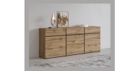 Ajoutez une touche contemporaine à votre intérieur avec le buffet HAVANA. Avec ses dimensions de 180 cm de largeur, 78,3 cm de hauteur et 40 cm de profondeur, ce meuble offre un espace de rangement optimal grâce à ses 3 portes battantes et 3 tiroirs. Le coloris chêne associé au noir mat apporte une esthétique moderne, idéale pour tout salon ou salle à manger.