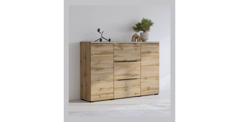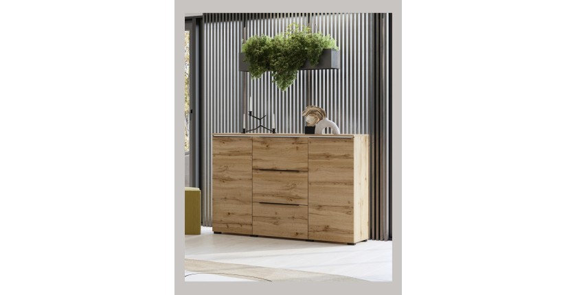 Apportez une touche de style naturel et moderne à votre intérieur avec le buffet ALICE coloris chêne wotan. Conçu avec des matériaux de haute qualité, ce buffet allie esthétisme et praticité pour répondre à tous vos besoins de rangement.
