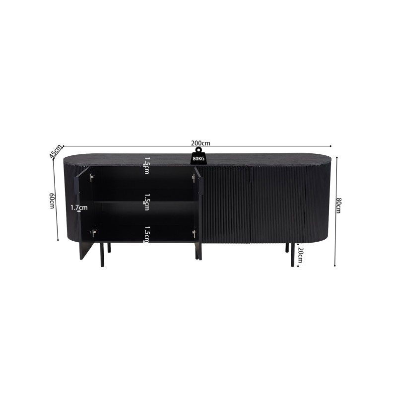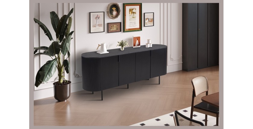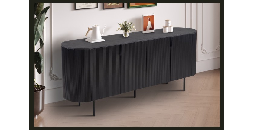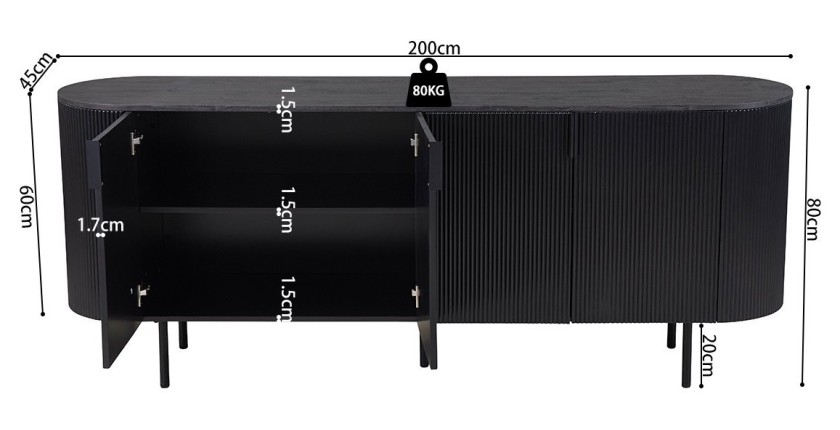 Le buffet VAGOS, avec ses 4 portes, est la solution idéale pour organiser et ranger vos objets du quotidien avec style. Ce bahut design de la collection VAGOS est fabriqué en MDF avec une finition en papier 3D, offrant une robustesse et une esthétique moderne. Avec ses dimensions généreuses de L200 x H80 x P45 cm, il s'intègre parfaitement dans une salle à manger ou un salon contemporain.