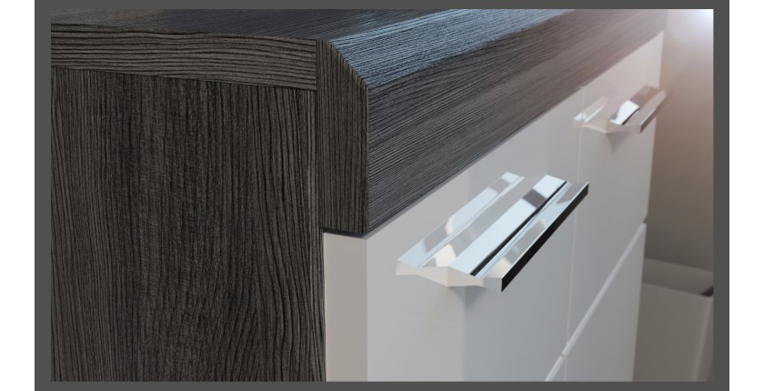 Apportez élégance et fonctionnalité à votre salle à manger avec le buffet SCOTT. Doté de 3 portes battantes et d’un tiroir spacieux, ce meuble offre une solution de rangement complète. Sa finition en gris foncé et blanc laqué s’harmonise parfaitement avec un intérieur contemporain. Dimensions : 120x85x37 cm.