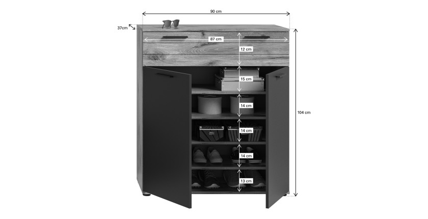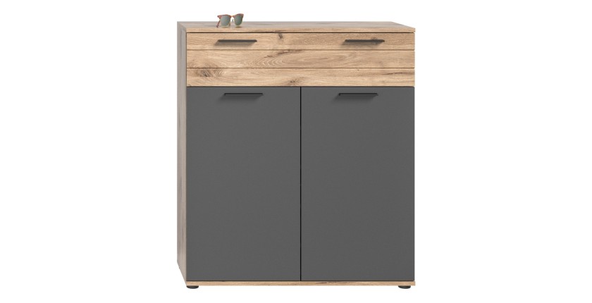 Le buffet 2 portes et 1 tiroir SELMA est le meuble parfait pour apporter à la fois praticité et élégance à votre salon ou salle à manger. Son design moderne en gris anthracite et chêne clair s'intégrera harmonieusement dans votre décoration, tout en offrant un grand espace de rangement.