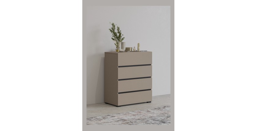 Apportez une touche d’élégance naturelle à votre intérieur avec le buffet HAVANA en beige et noir. Ses lignes épurées et son coloris chaleureux s’associent à un contraste noir raffiné pour un rendu à la fois moderne et intemporel. Doté de quatre tiroirs spacieux, ce petit meuble compact est aussi pratique qu’esthétique.