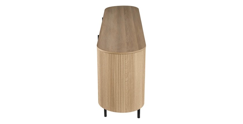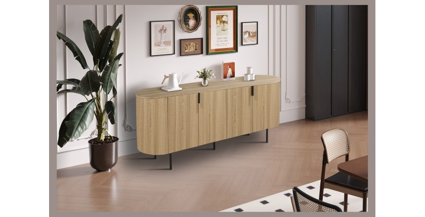 Le coloris chêne naturel est idéal pour créer une atmosphère lumineuse, douce et accueillante. Ce buffet allie parfaitement esthétisme et utilité, pour un espace de vie ordonné et harmonieux.
