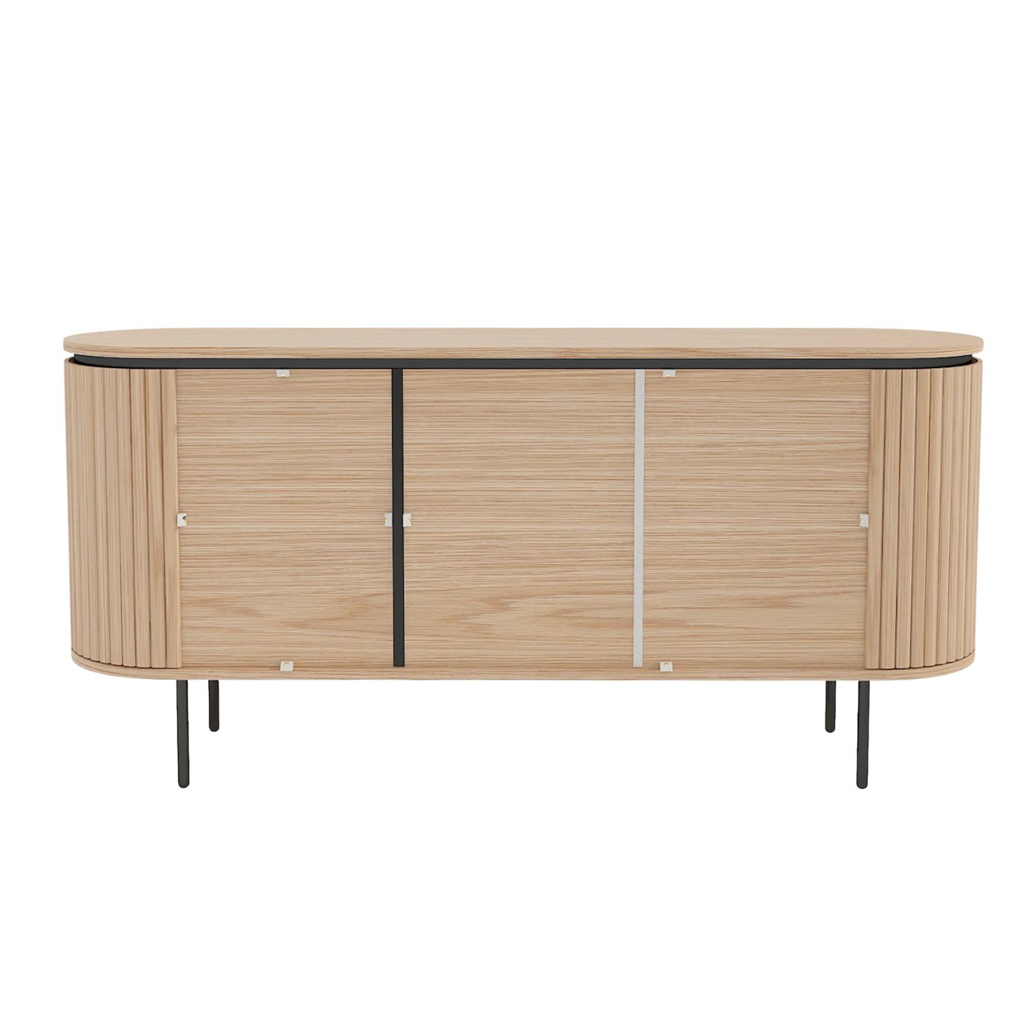 Ajoutez une touche scandinave contemporaine à votre intérieur avec ce buffet SÖREN 160 cm. Sa structure en panneaux de particules et MDF de qualité est habillée d’un revêtement aspect chêne clair, tandis que ses côtés arrondis adoucissent les lignes pour un rendu élégant et moderne. Ses pieds fins en métal noir apportent légèreté et raffinement, tout en assurant stabilité et robustesse.