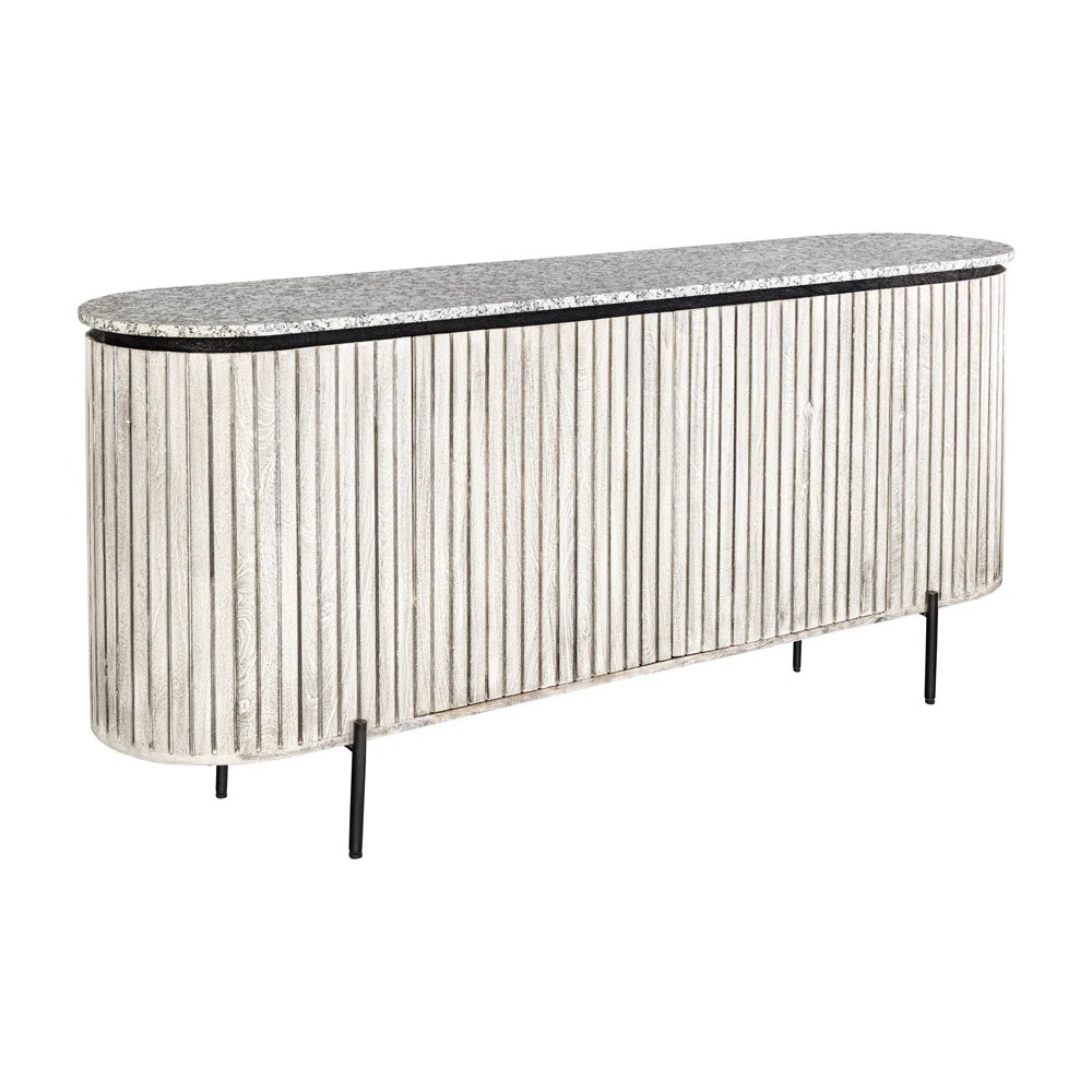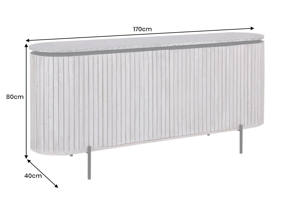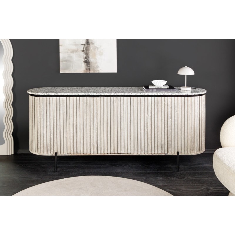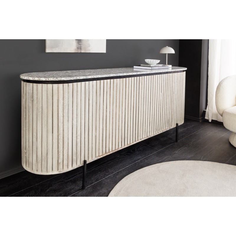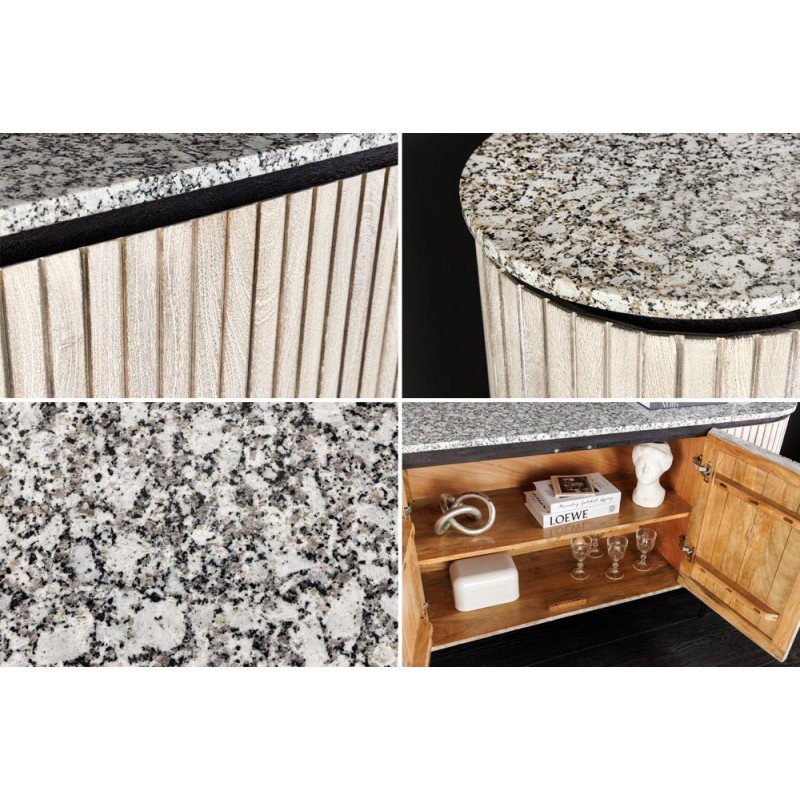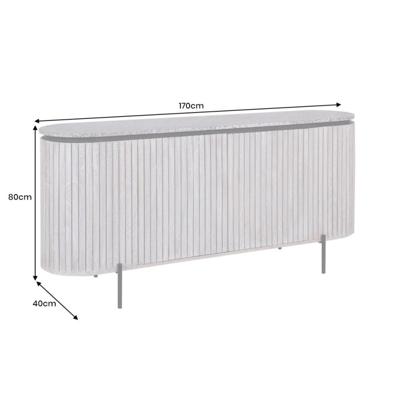 Élégant et contemporain, le buffet NOARA 170 cm séduit par son design raffiné et minimaliste. Conçu en bois massif nervuré clair, il est sublimé par un plateau en pierre grise façon granit, qui lui apporte robustesse et sophistication. Ses pieds fins en métal noir renforcent son allure moderne et aérienne.