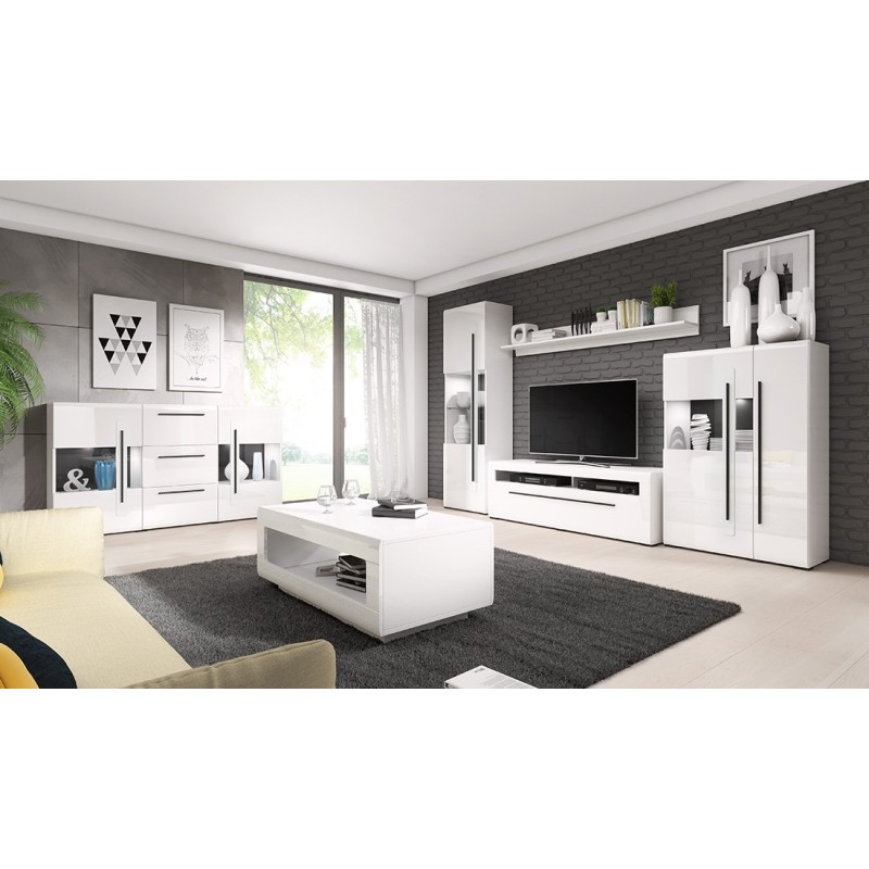 - CARACTÉRISTIQUES : Buffet avec 2 portes partiellement vitrées avec éclairage LED et trois tiroirs.