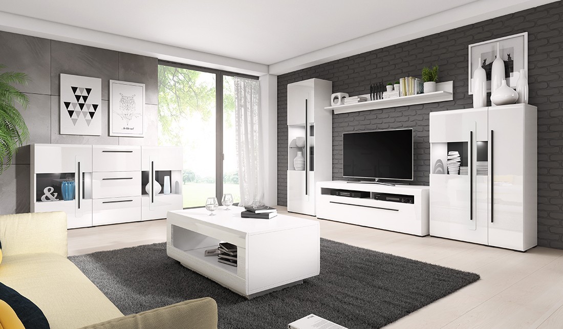- COLORIS : Corps du meuble blanc mat. Façades portes blanches brillantes.