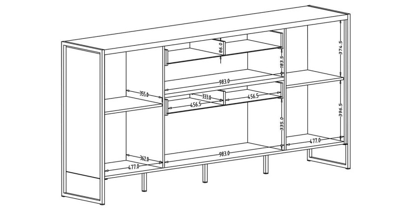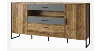 Offrez à votre salon un style unique au top des dernières tendances déco grâce à ce buffet de la gamme ZOLA ! Ce buffet est composé de nombreux rangements grâce à ses trois portes et ses deux tiroirs.