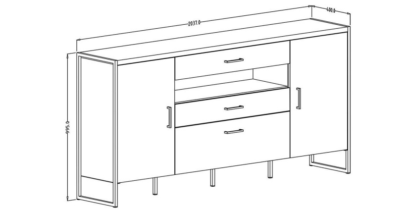 - CARACTÉRISTIQUES : Buffet avec 3 portes, 2 tiroirs et une niche avec éclairage LED intégré.