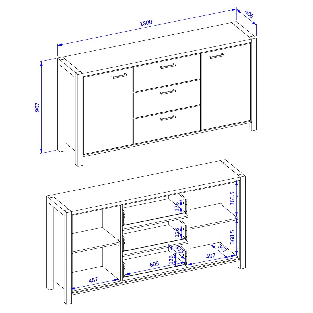 - CARACTÉRISTIQUES : Buffet avec 2 portes et 3 tiroirs.