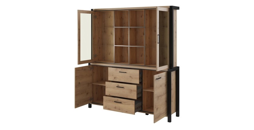 - CARACTÉRISTIQUES : Buffet avec 2 portes et 3 tiroirs. Huche composée de 2 portes vitrées et 6 niches avec éclairage LED intégré.