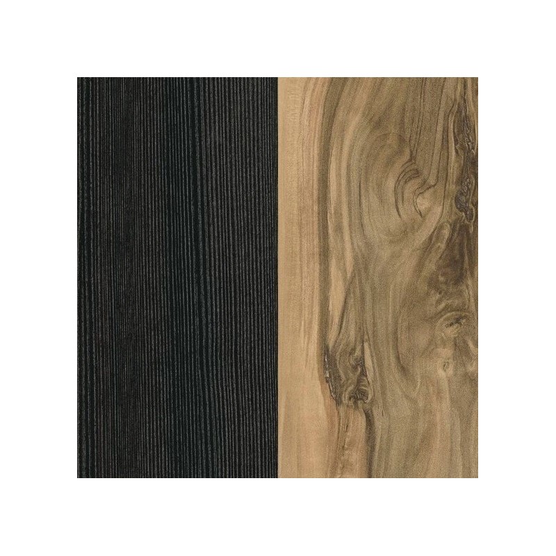 Le buffet SANTIAGO présente un look moderne avec un design épuré et une finition aspect bois, combinant le noyer et le noir effet bois.