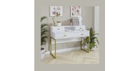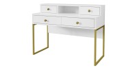 La console bureau de la collection DOUGLAS est un meuble élégant et fonctionnel en coloris blanc. Avec des dimensions de 120 cm de largeur, 95 cm de hauteur et 50 cm de profondeur, elle est dotée de quatre tiroirs et d'une niche pour offrir un espace de rangement optimisé tout en apportant une touche moderne à votre bureau.