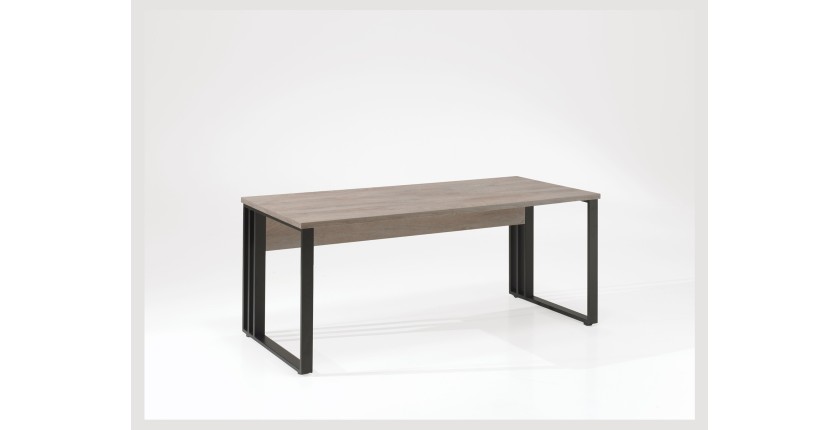 Aménagez un espace de travail fonctionnel et élégant avec le bureau professionnel YUKON de 180 cm. Son plateau en chêne brut et sa structure en métal noir s’inscrivent dans un style industriel sobre et tendance, parfait pour une ambiance professionnelle contemporaine.