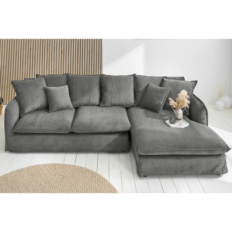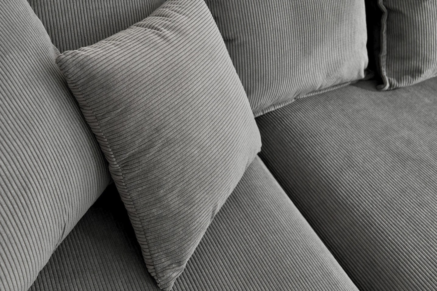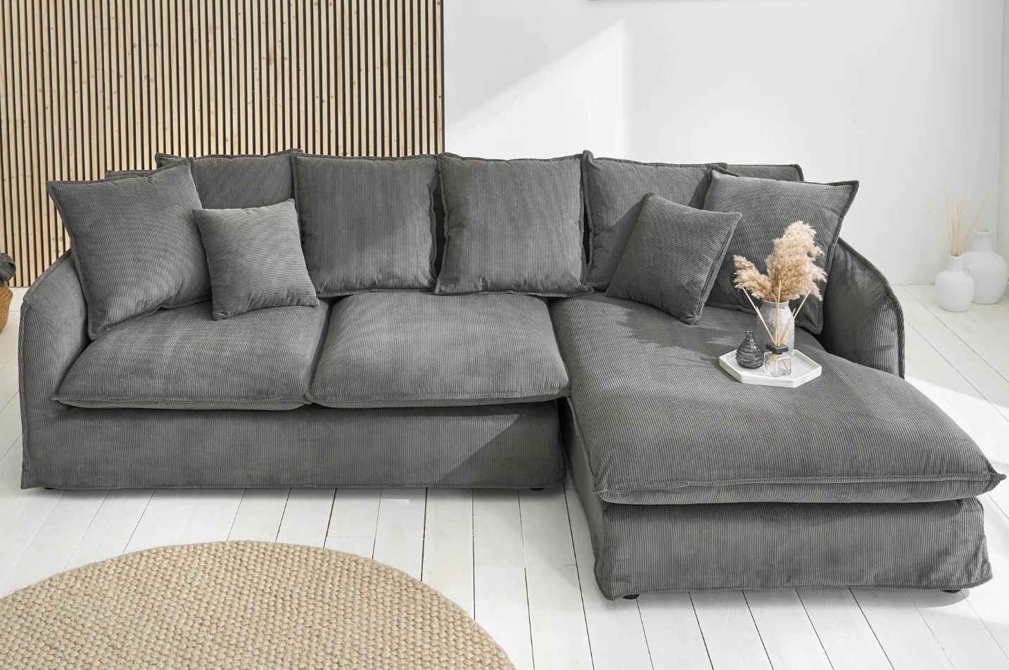 Le canapé d’angle KALIA séduit par son revêtement en tissu côtelé gris, à la fois élégant, doux au toucher et facile à intégrer dans un salon moderne. Son format généreux en 4 places et son angle droit en font une solution idéale pour créer un espace convivial et structuré.