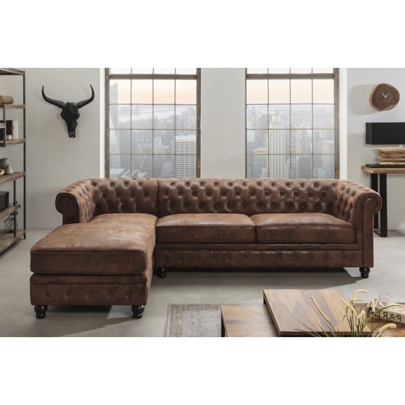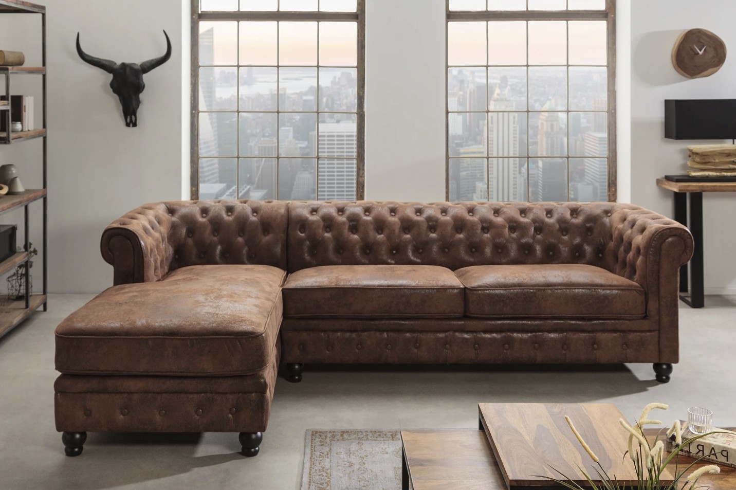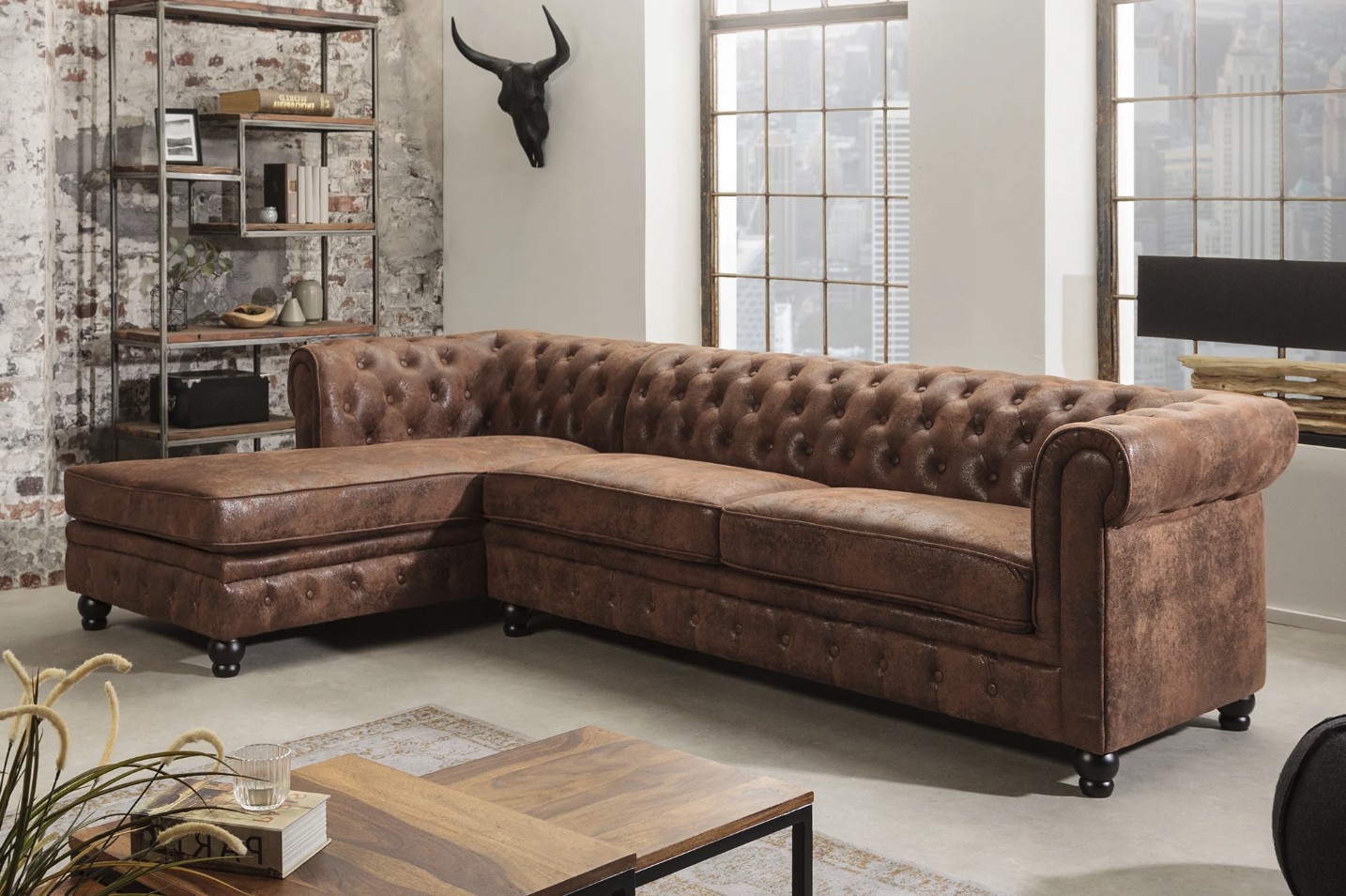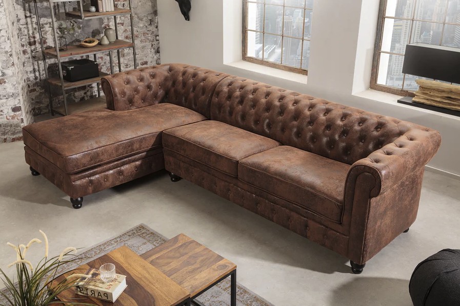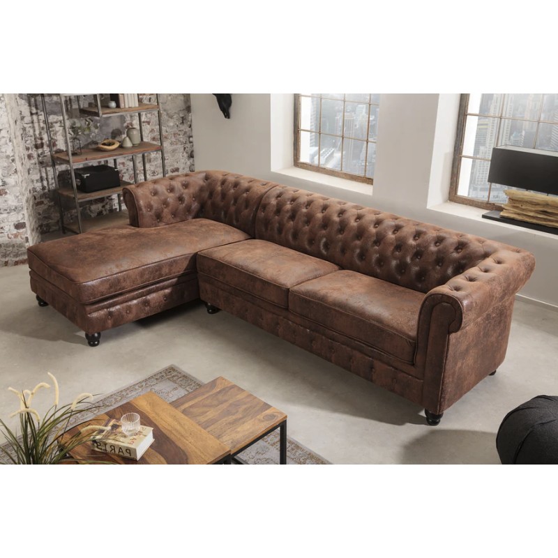 Le canapé d’angle EDGAR en marron chocolat incarne le charme du style baroque dans une version spacieuse et raffinée. Son design inspiré du mobilier classique apporte du caractère à votre salon, tandis que son format d’angle droit optimise l’aménagement de l’espace et favorise la convivialité.