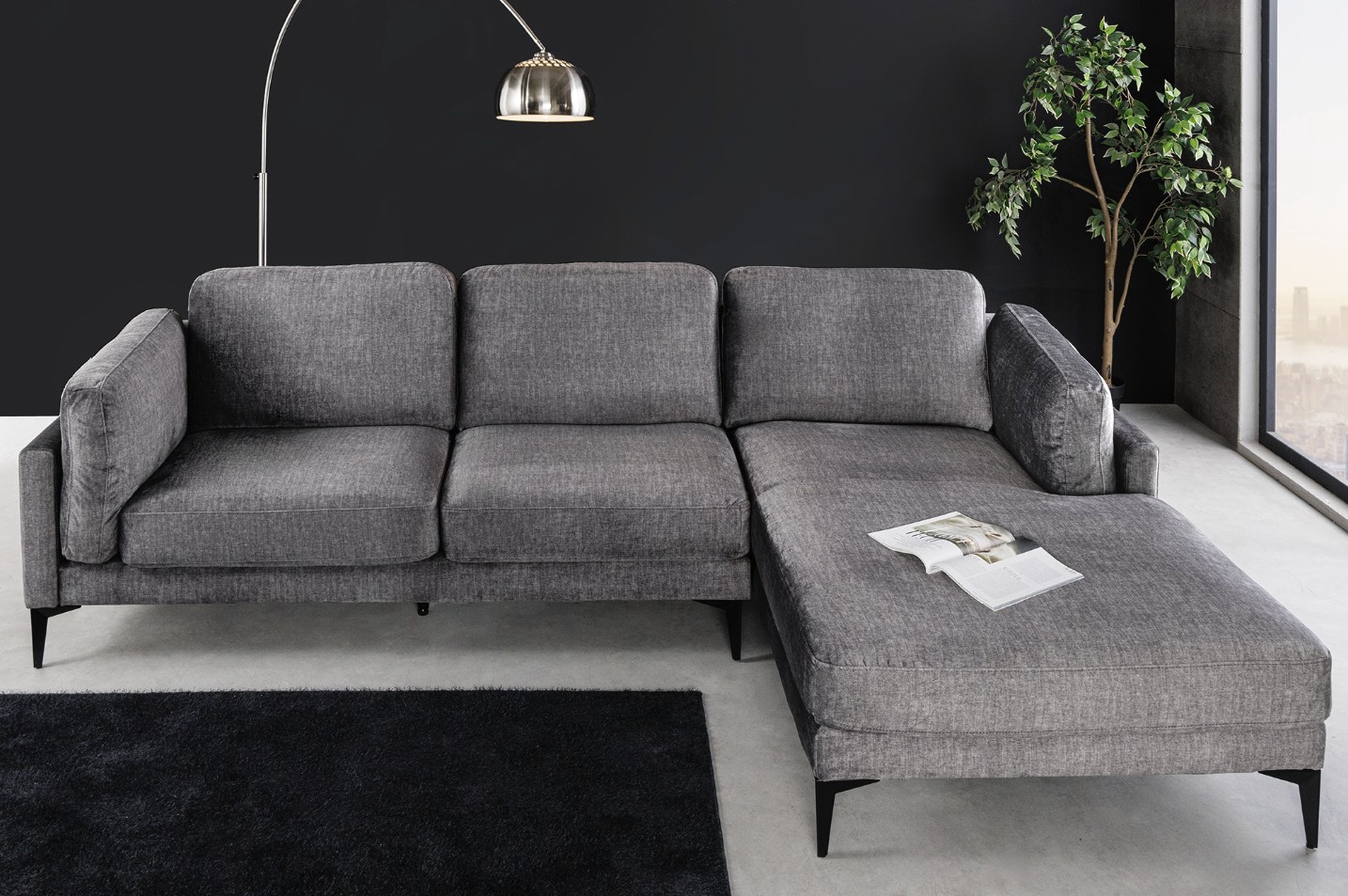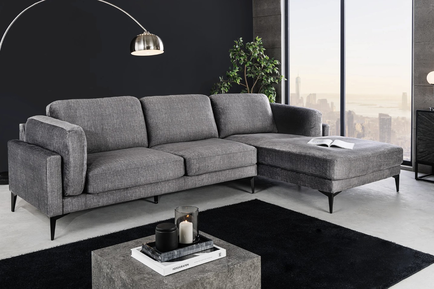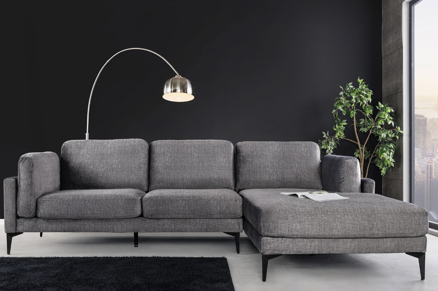Le canapé d’angle URBANE en gris foncé séduit par son design contemporain épuré et ses lignes équilibrées, idéales pour structurer un salon moderne avec élégance. Son format généreux et son angle à droite offrent un espace de détente confortable, parfaitement adapté à la vie quotidienne comme aux moments de convivialité.