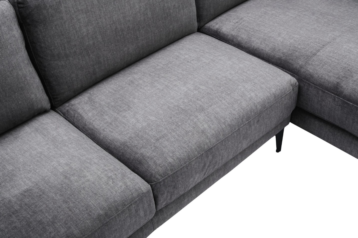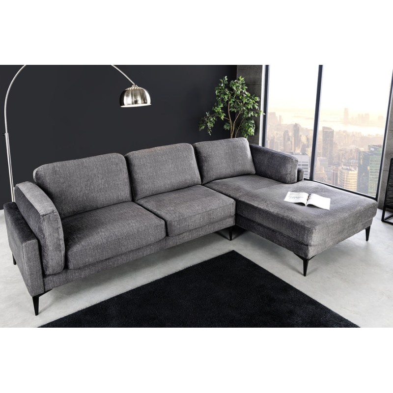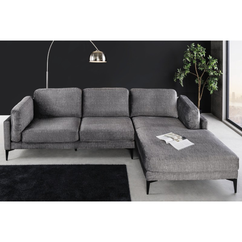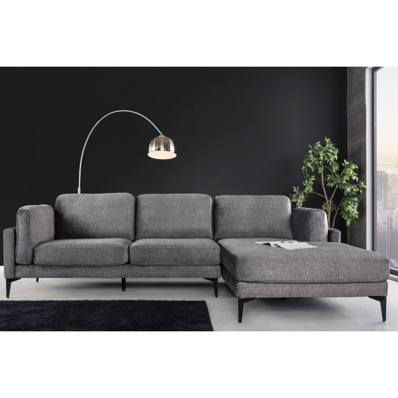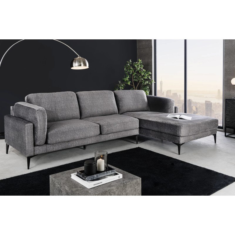 Le canapé d’angle URBANE en gris foncé séduit par son design contemporain épuré et ses lignes équilibrées, idéales pour structurer un salon moderne avec élégance. Son format généreux et son angle à droite offrent un espace de détente confortable, parfaitement adapté à la vie quotidienne comme aux moments de convivialité.