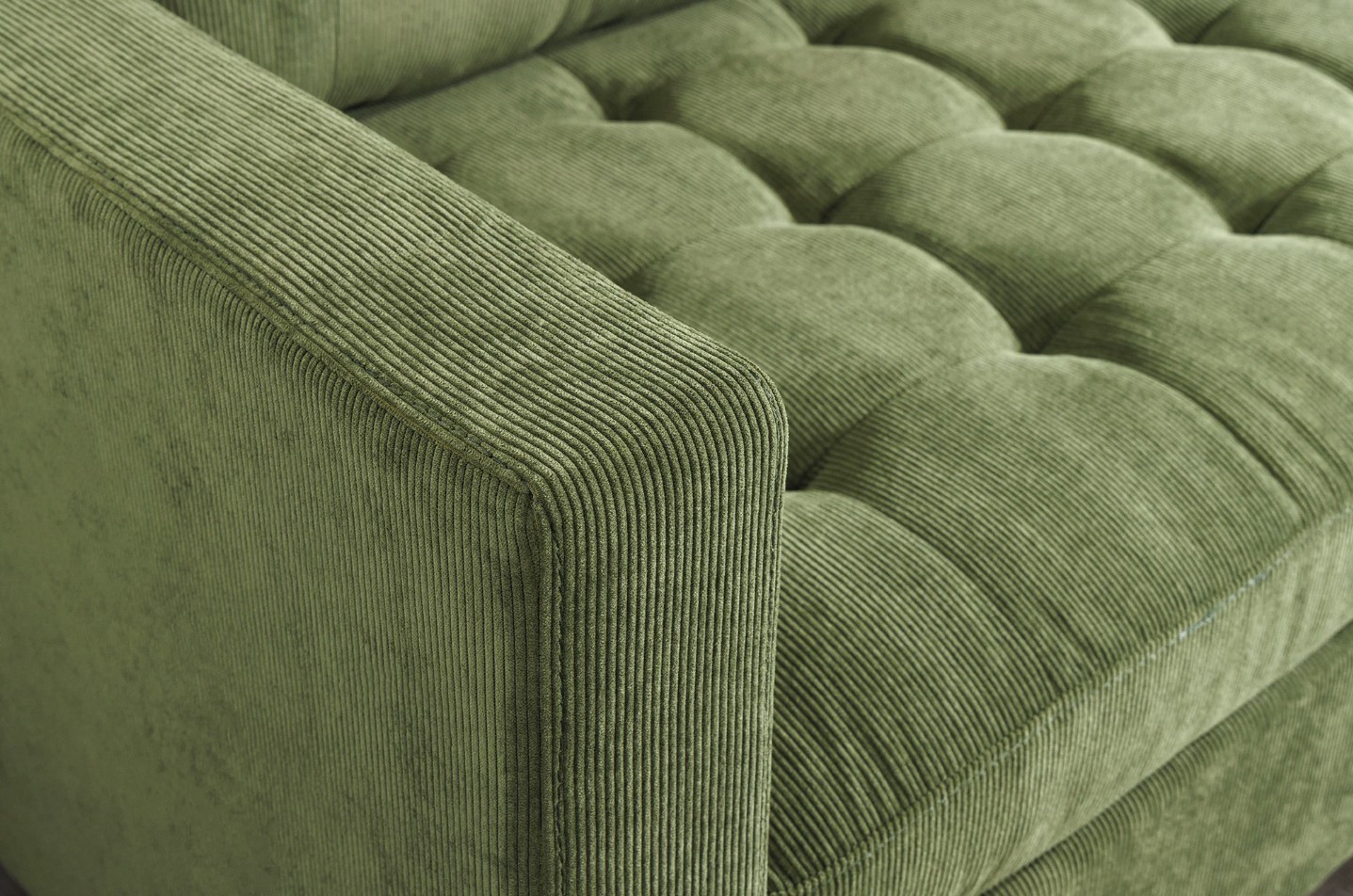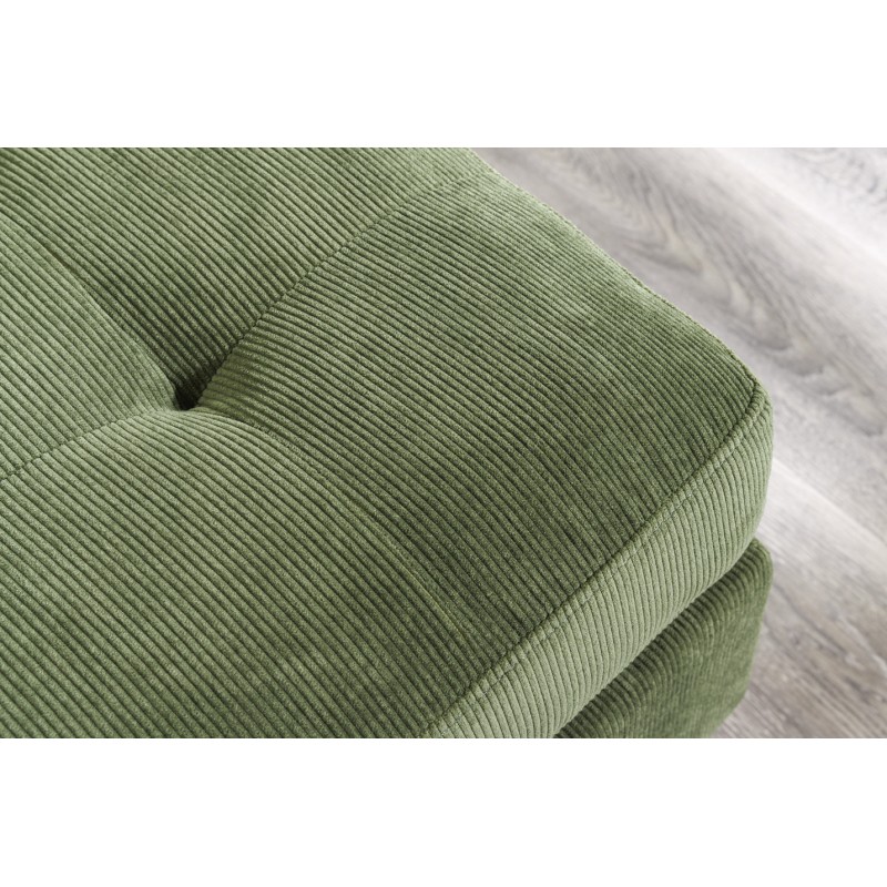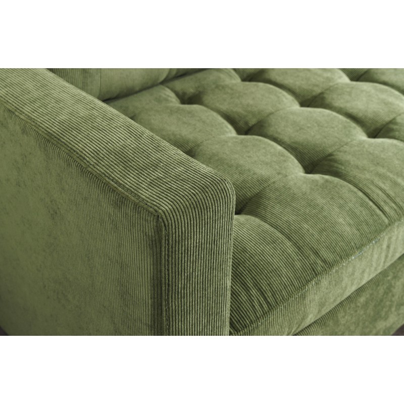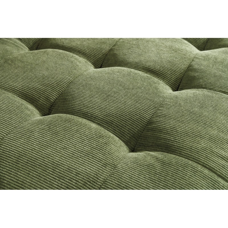 Doté d’une structure en bois associée à des matériaux robustes, ce canapé assure stabilité et durabilité. Son revêtement en velours côtelé 100 % polyester apporte une texture chaleureuse et tendance, tout en restant agréable au toucher et facile à entretenir. Les finitions aspect matelassé sur l’assise et le dossier renforcent le confort et soulignent son style contemporain.