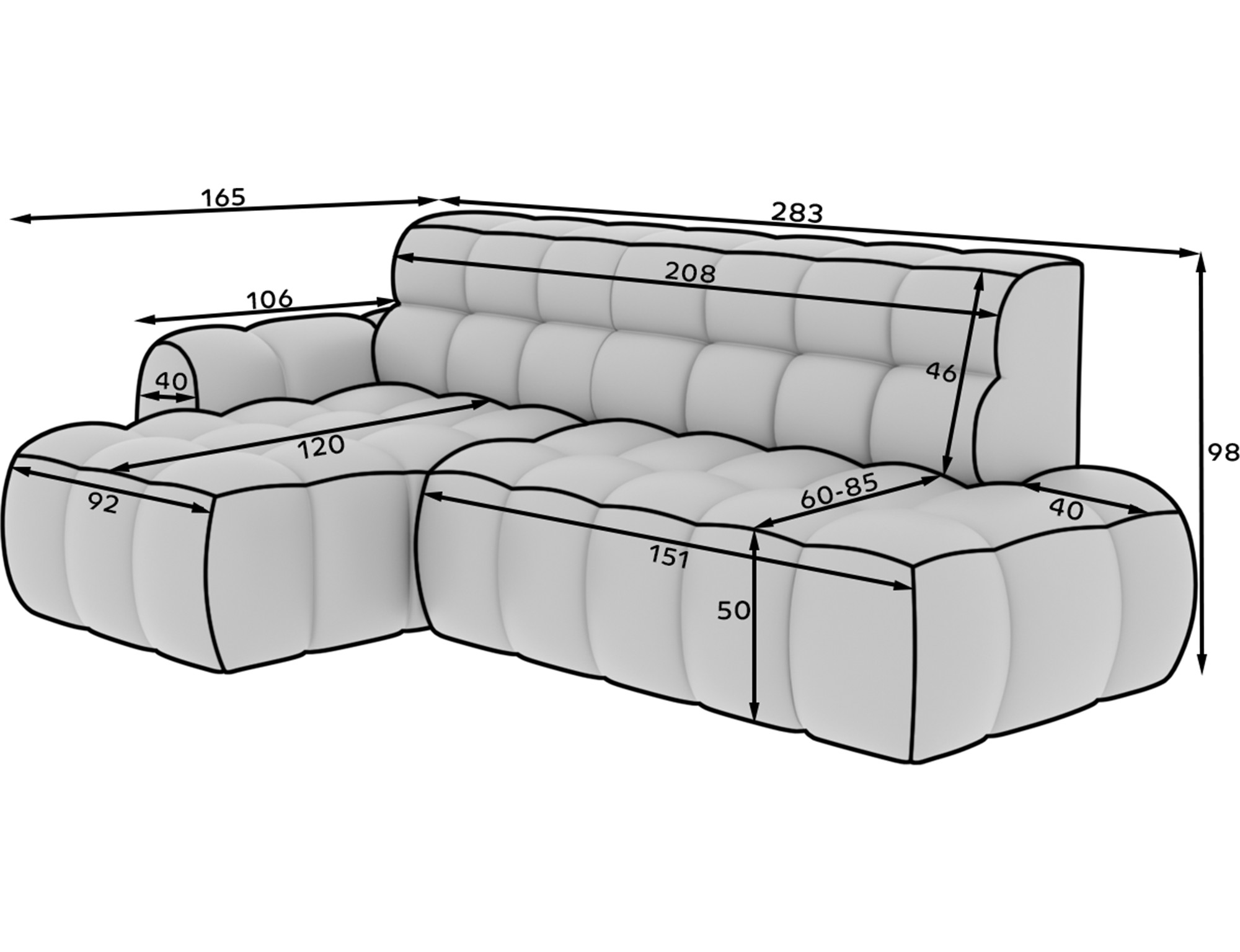 | Dimensions de la méridienne (cm) | 120x92x50 |