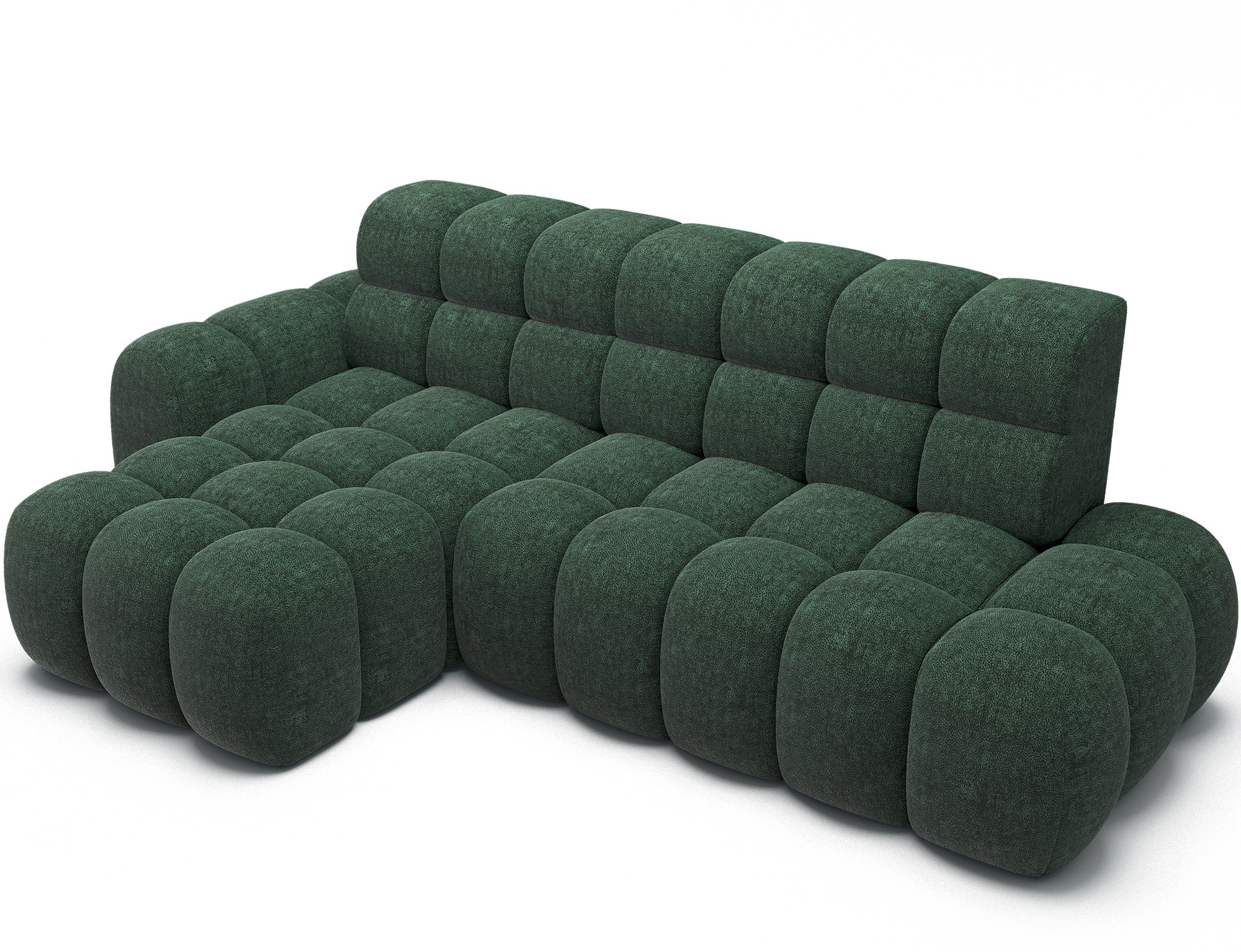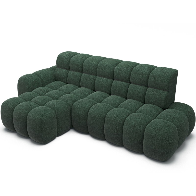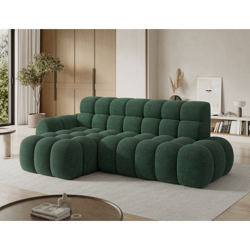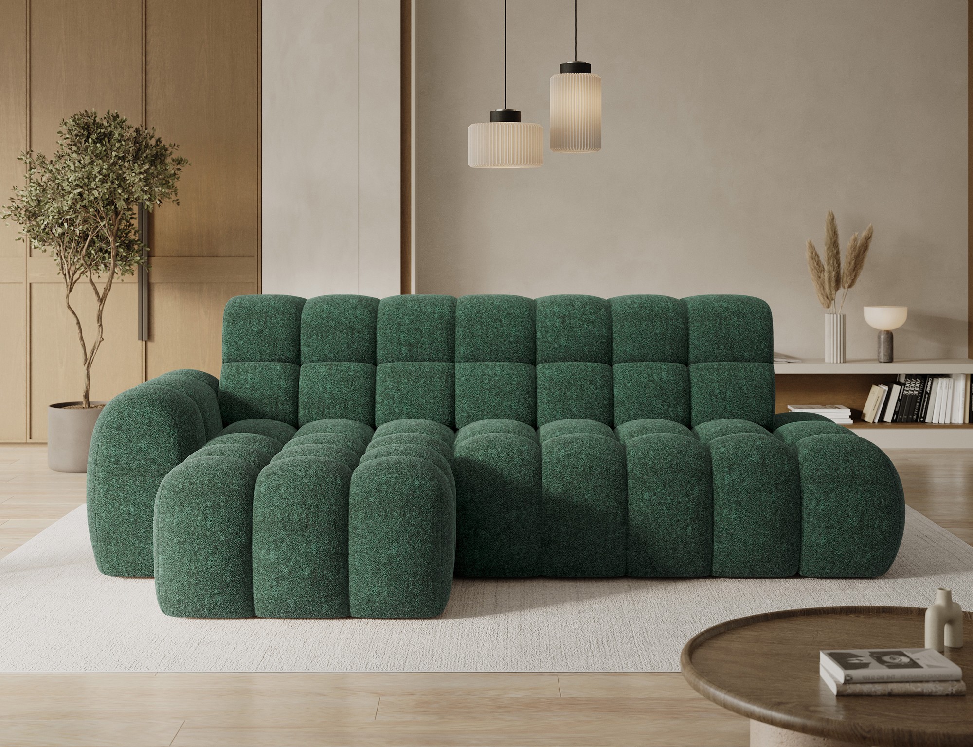 Le canapé d’angle BULLA associe design moderne, confort généreux et fonctionnalités pratiques pour sublimer votre salon. Son revêtement en tissu bouclette vert émeraude apporte une touche élégante et contemporaine tout en offrant un toucher doux particulièrement agréable.