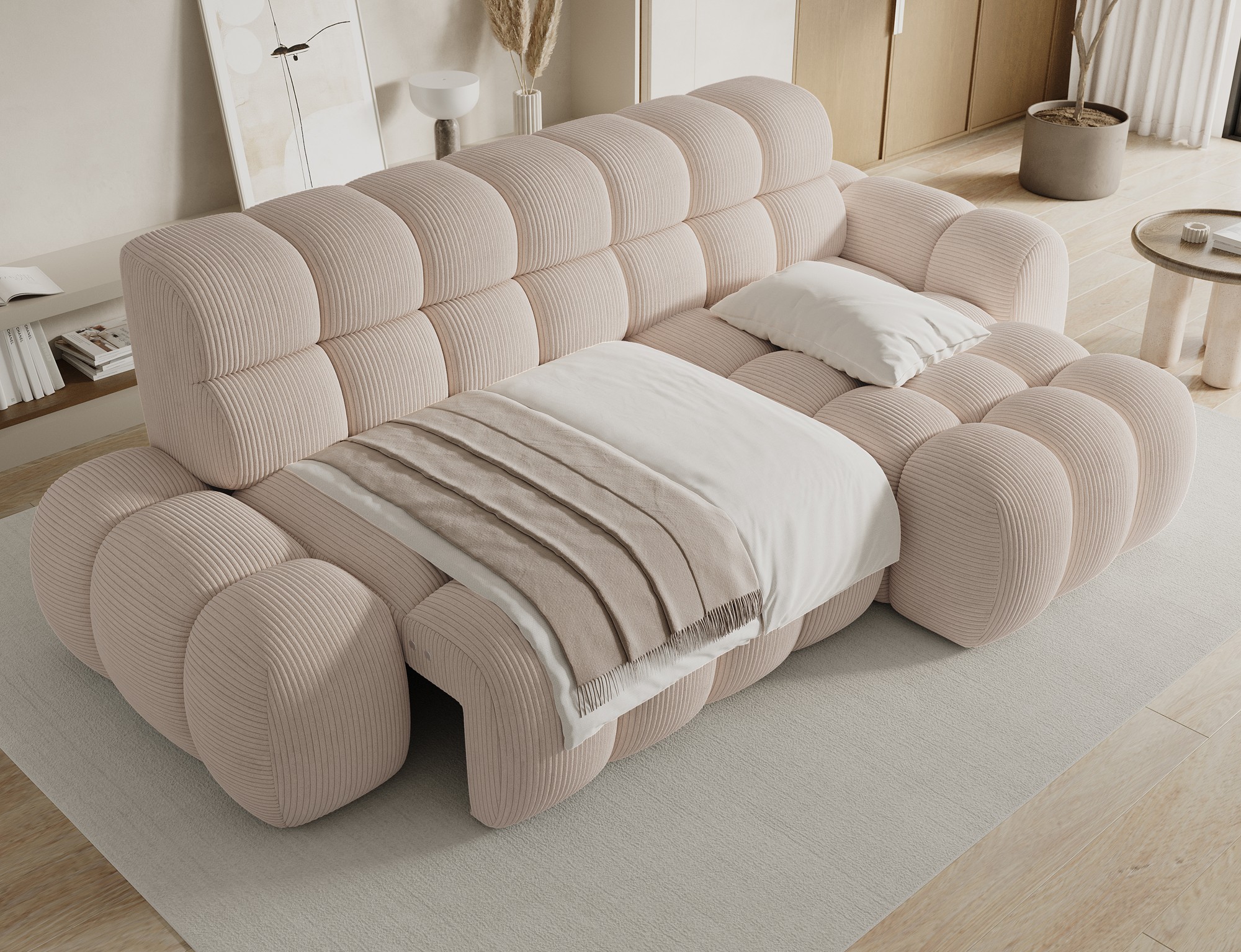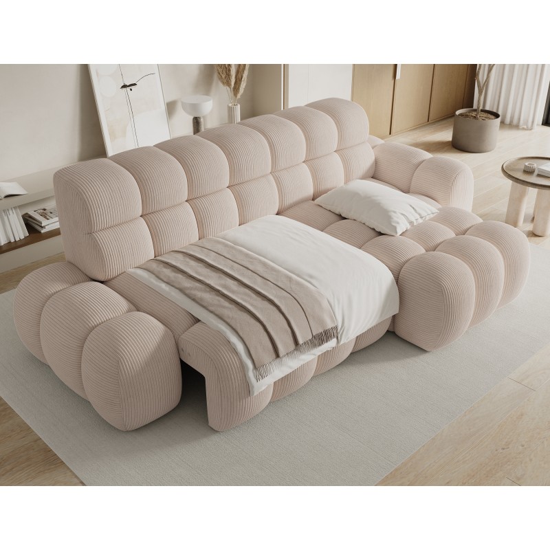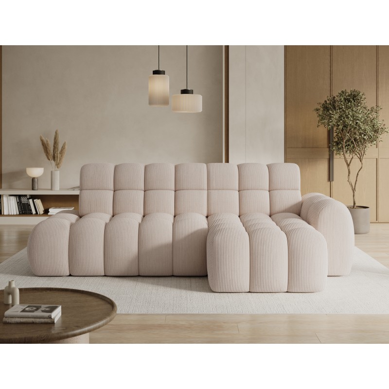 Le velours côtelé apporte un relief élégant et un aspect cosy très tendance dans les intérieurs contemporains. Son coloris beige lumineux s’harmonise facilement avec différents styles de décoration.