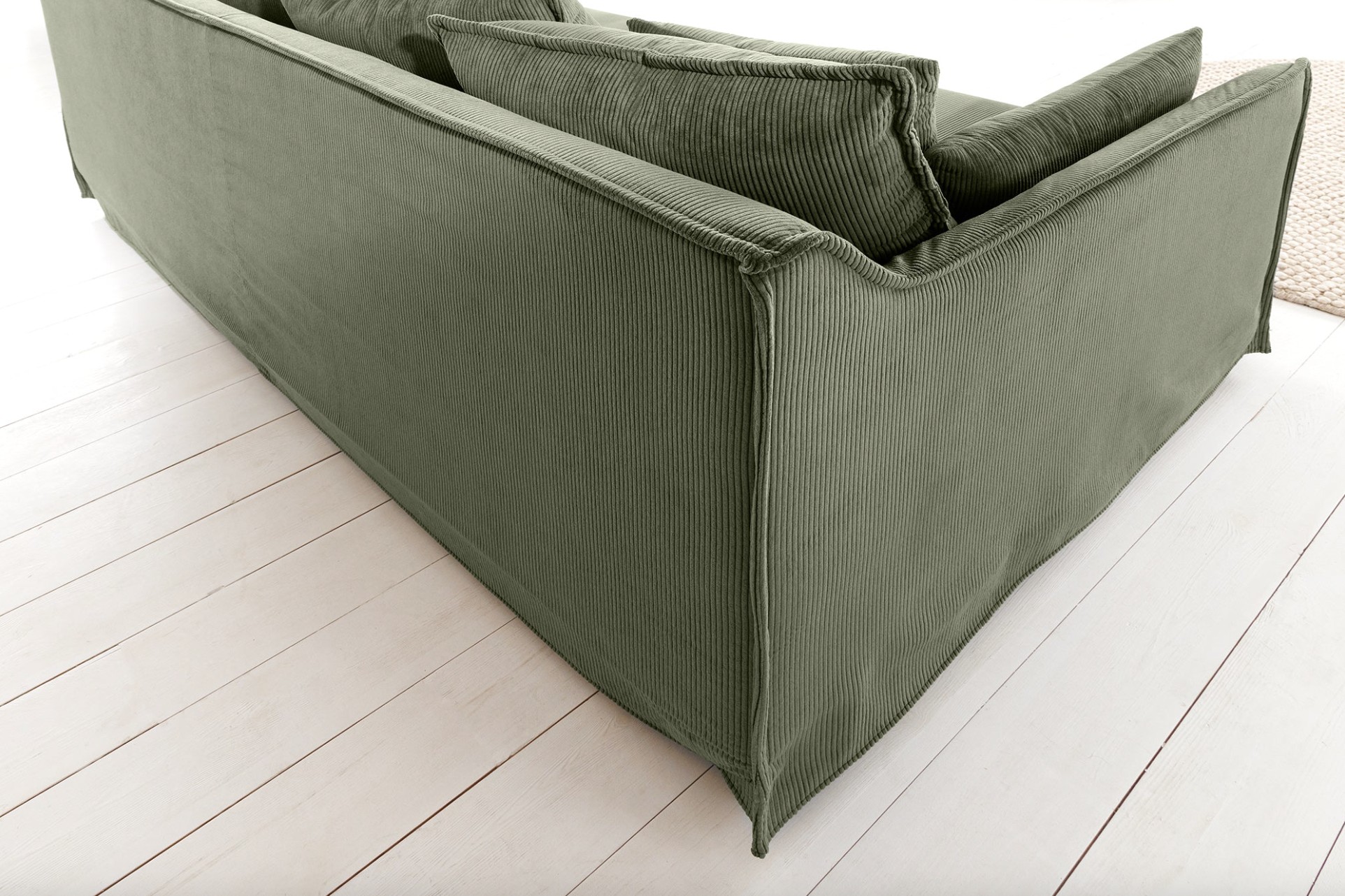 Le canapé droit KALIA séduit par son design contemporain et son élégant revêtement en tissu côtelé vert foncé, idéal pour apporter du caractère et une touche tendance à votre salon. Avec son format droit et ses lignes équilibrées, il s’intègre facilement dans tous les espaces de vie modernes.