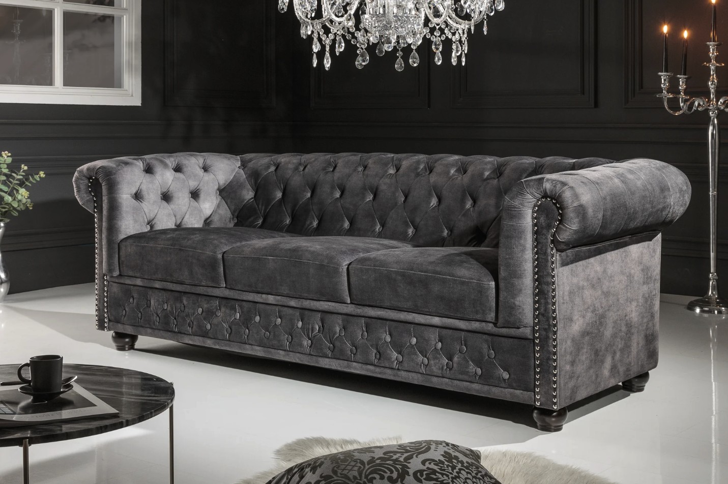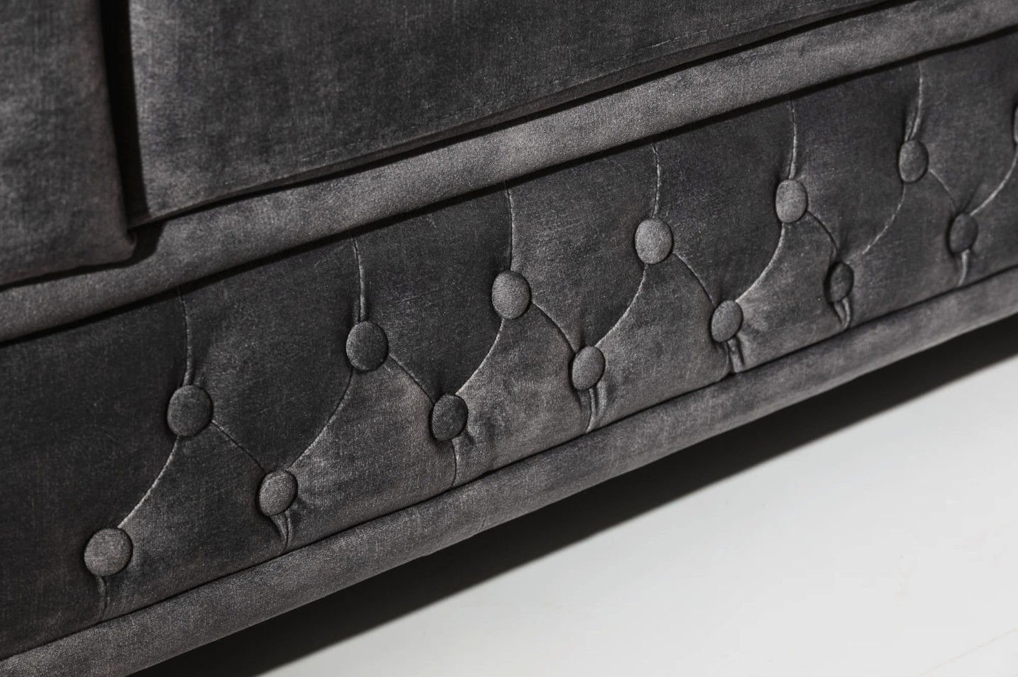 Le canapé droit EDGAR en velours gris foncé affirme un style baroque raffiné et intemporel. Sa teinte profonde et élégante apporte du caractère à votre salon tout en conservant une atmosphère chaleureuse et sophistiquée. Son format droit 3 places est idéal pour offrir un confort généreux au quotidien.