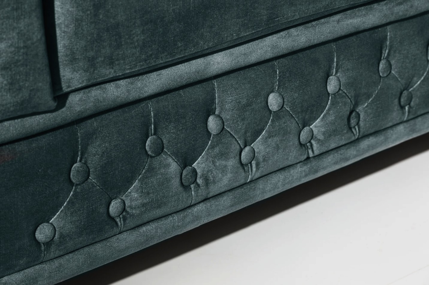 Doté d’une structure robuste en bois de peuplier, utilisée à la fois pour le cadre et les pieds, le canapé EDGAR garantit stabilité et durabilité. Son revêtement en velours à l’aspect matelassé offre un toucher doux et une assise confortable, parfaitement adaptée à un usage quotidien. Facile à monter et simple à entretenir, il conjugue élégance baroque et fonctionnalité.