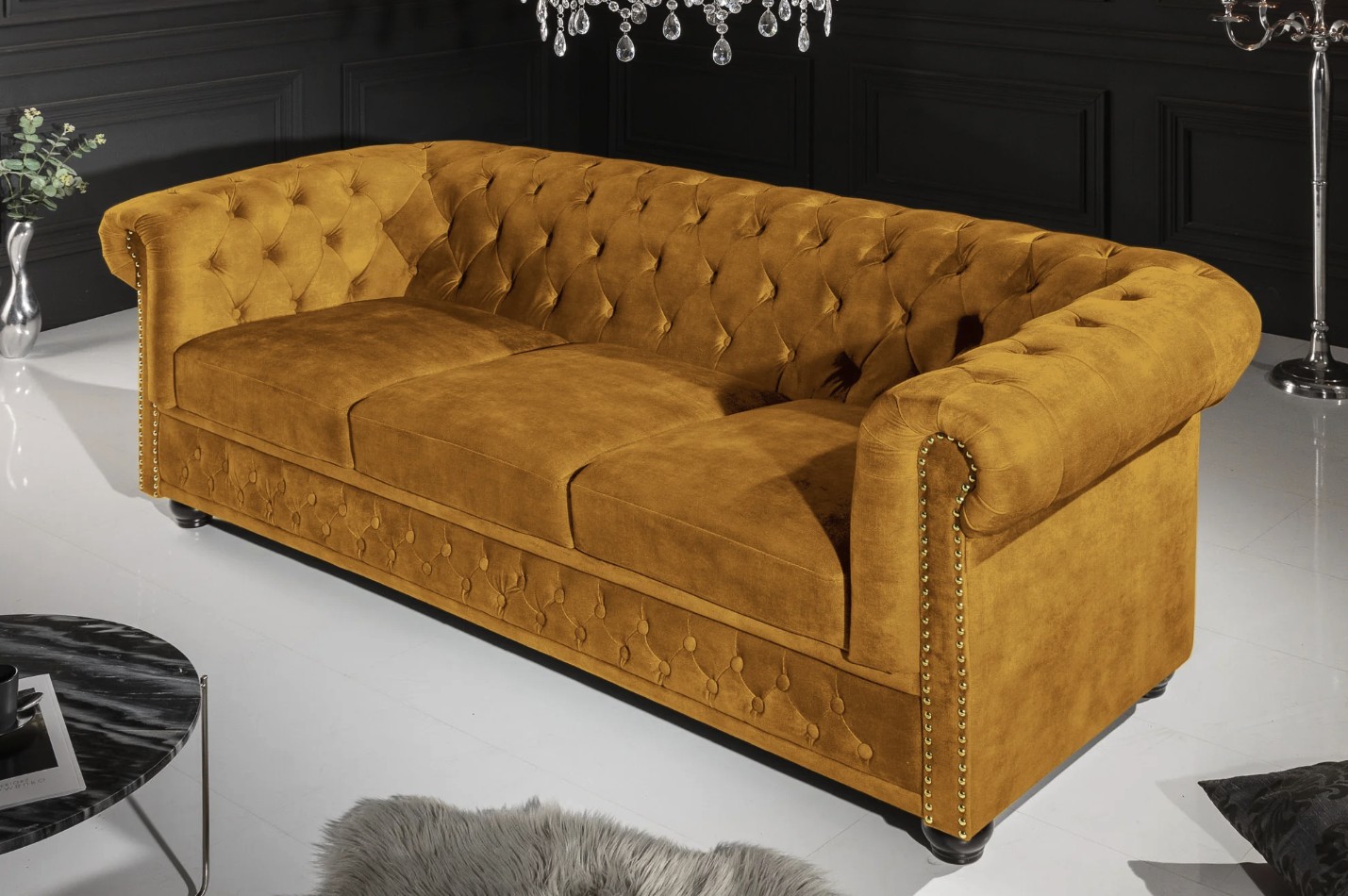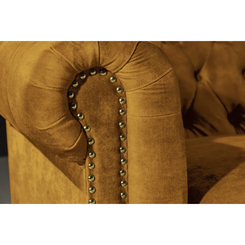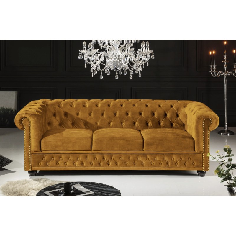 Le canapé droit EDGAR en velours jaune moutarde apporte une touche audacieuse et chaleureuse à votre intérieur. Sa teinte lumineuse met en valeur son design baroque inspiré du mobilier classique et crée un point focal élégant dans votre salon. Son format droit 3 places offre un confort généreux pour les moments de détente et de convivialité.