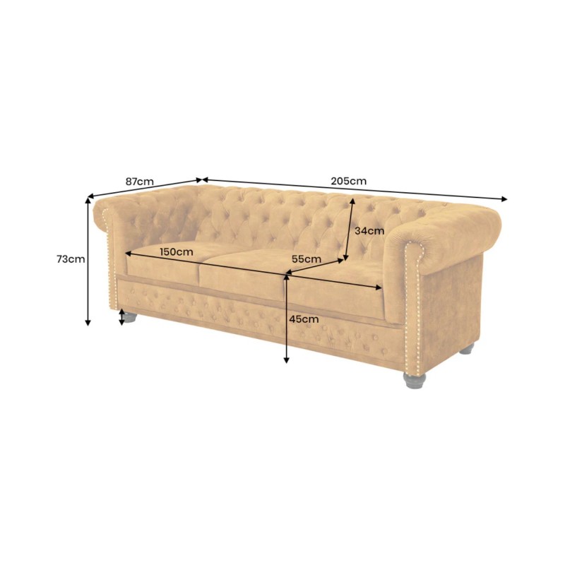 | Structure | Ressorts, velours, polyester, bois de peuplier, laiton |
