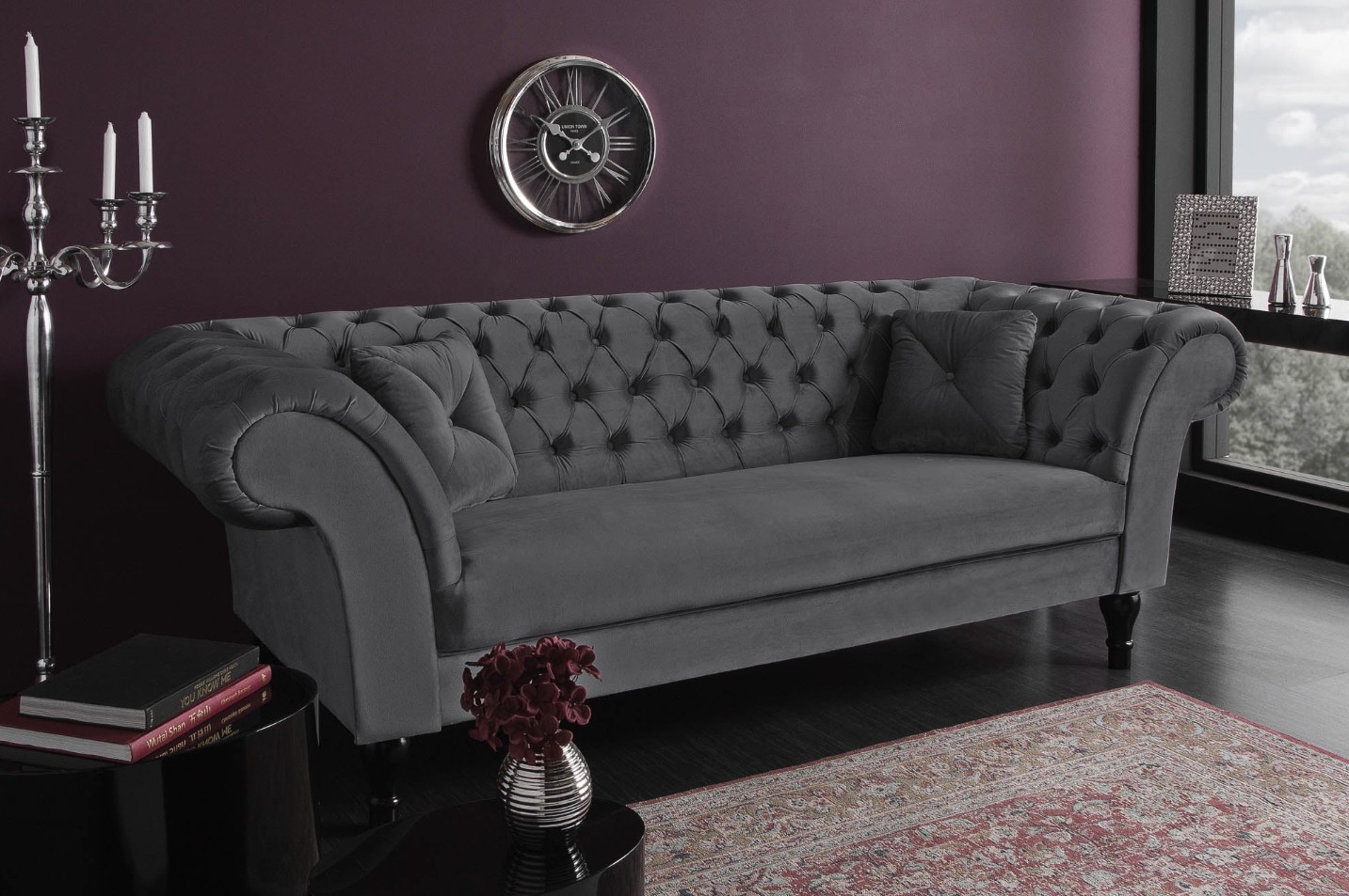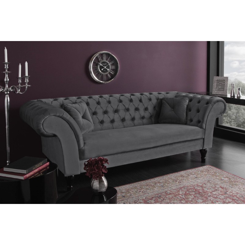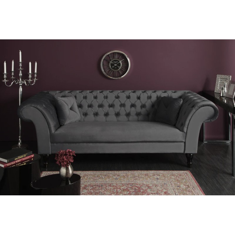 Le canapé EDGAR 3 places en gris séduit par son style baroque raffiné et son allure élégante, idéale pour sublimer un salon au caractère classique ou chic. Son design travaillé et son revêtement en velours apportent une touche sophistiquée tout en conservant un excellent niveau de confort.