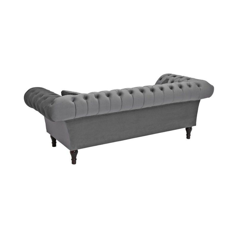 Ce canapé repose sur une structure en bois massif, garantissant solidité et longévité. Son revêtement en velours polyester à l’aspect matelassé offre une assise agréable et enveloppante. Les accoudoirs généreux renforcent le confort, tandis que sa conception fixe assure une parfaite stabilité au quotidien.