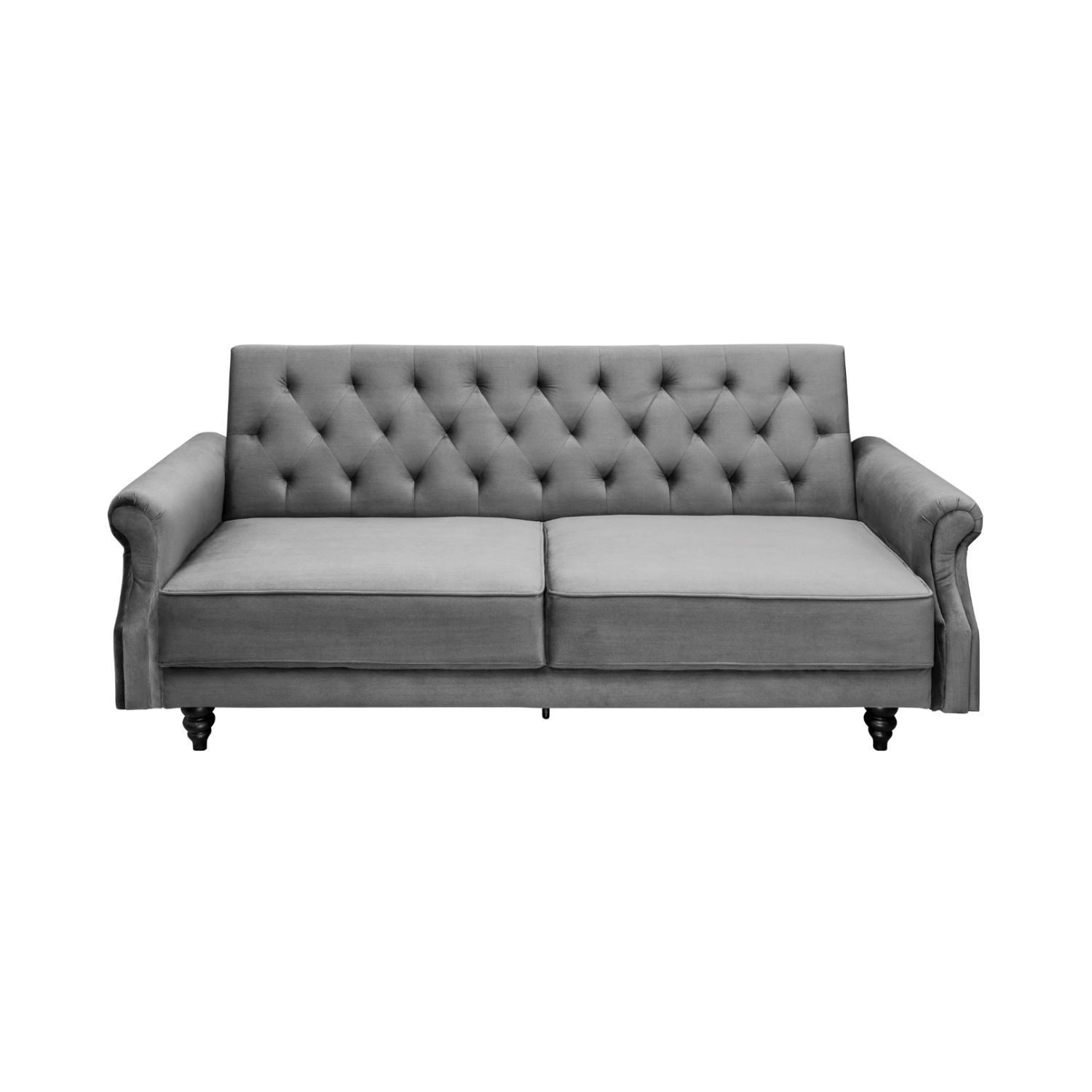 Ce modèle repose sur un cadre en bois de peuplier, garantissant stabilité et solidité dans le temps, associé à des pieds en bois d’hévéa. Son revêtement en velours polyester apporte une sensation douce au toucher et un rendu soigné, tandis que la finition aspect matelassé sur le dossier souligne son caractère décoratif. Facile à transformer, ce canapé intègre une fonction convertible pratique pour un couchage d’appoint.