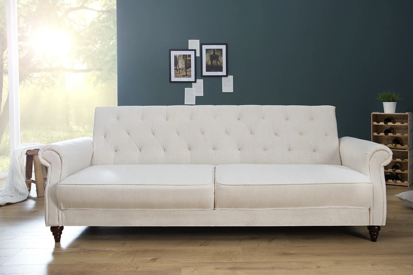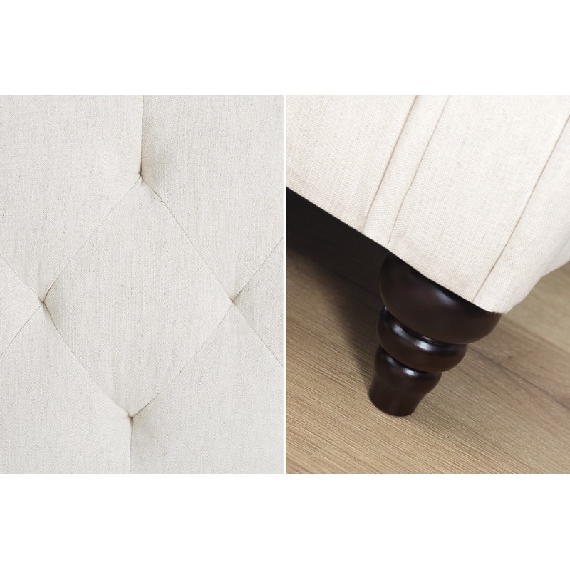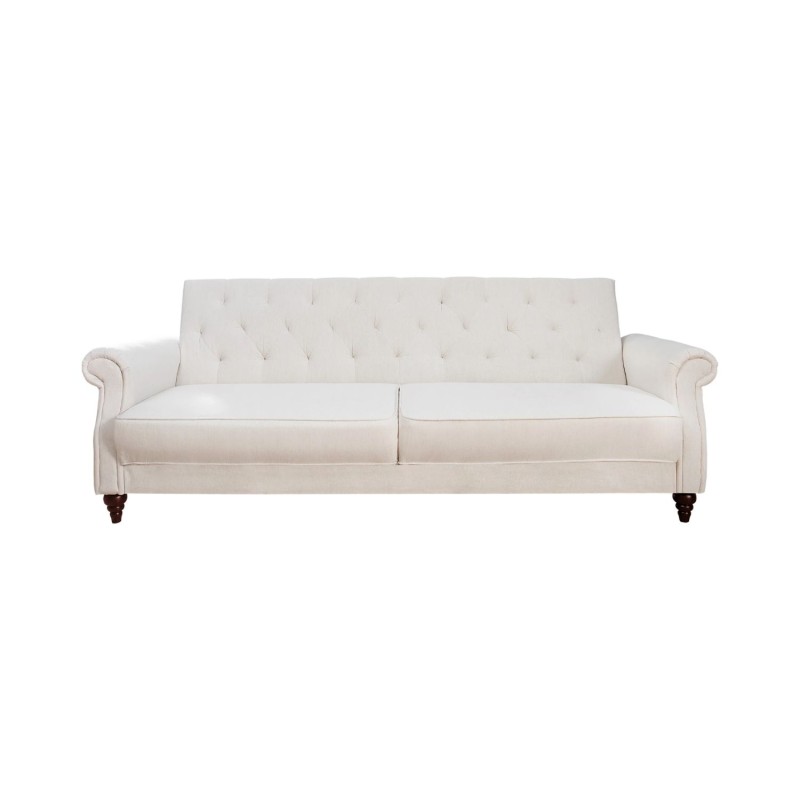 Ce canapé repose sur un cadre en bois de peuplier, garantissant stabilité et robustesse, associé à des pieds en bois d’hévéa. Son revêtement en tissu polyester offre un rendu sobre et agréable au toucher. La finition aspect matelassé sur le dossier souligne discrètement son style classique. Pratique, il dispose d’une fonction convertible permettant de créer un couchage d’appoint en toute simplicité.
